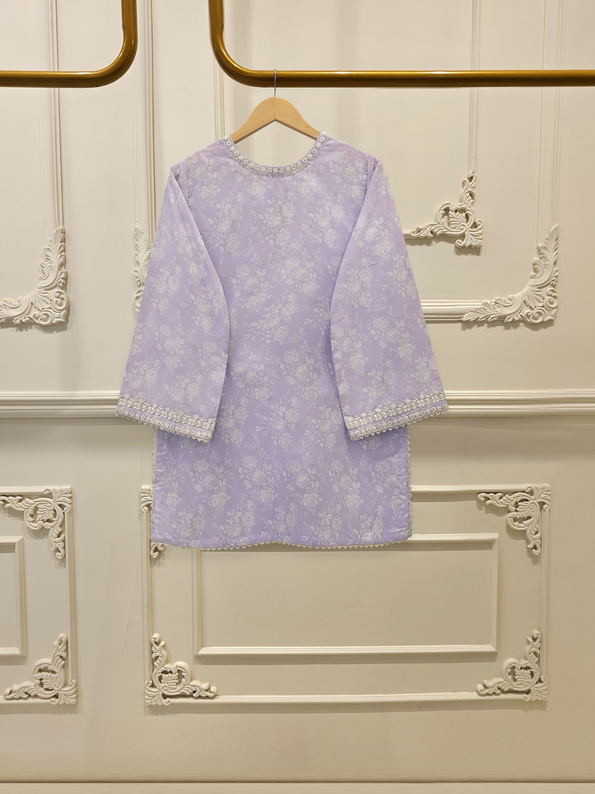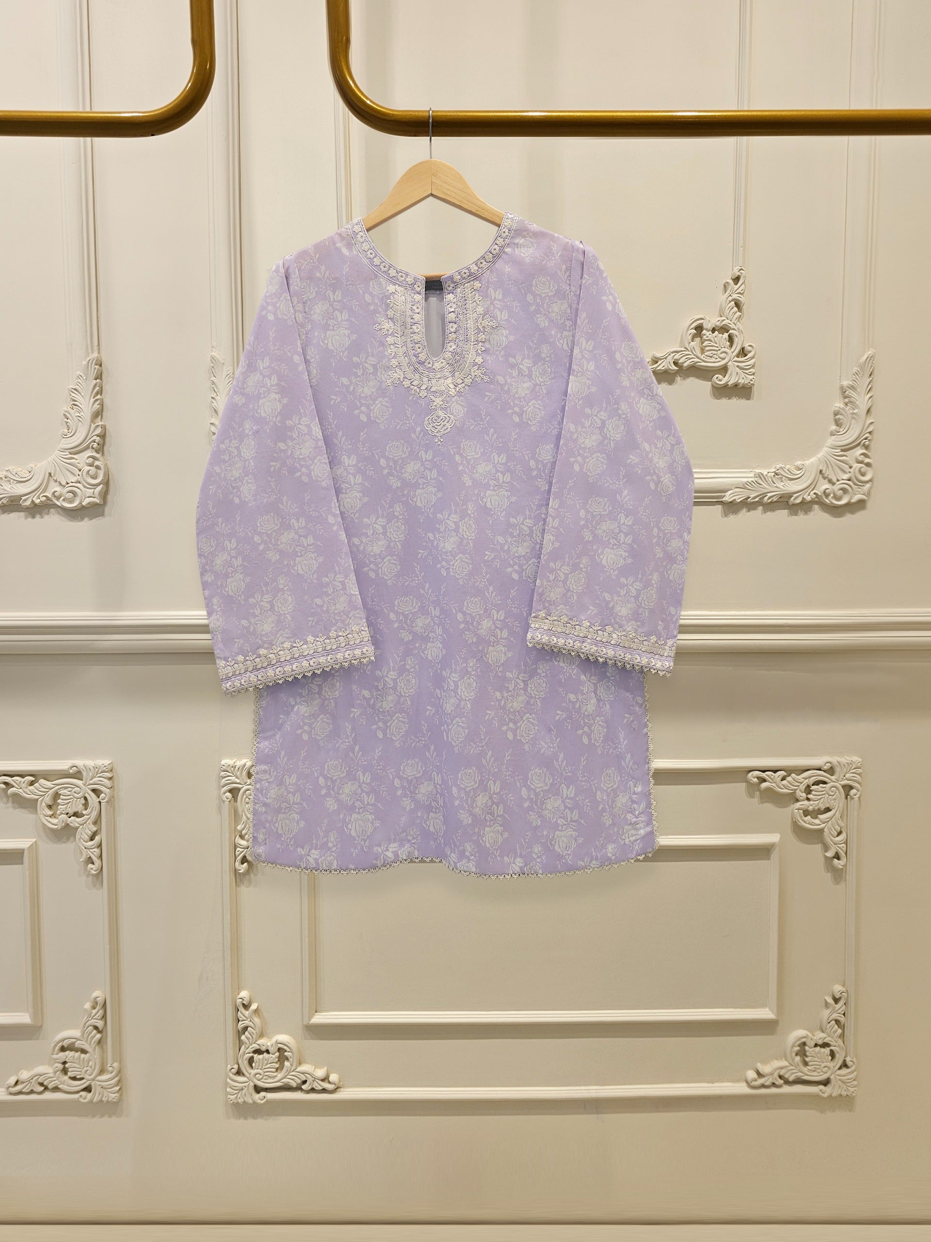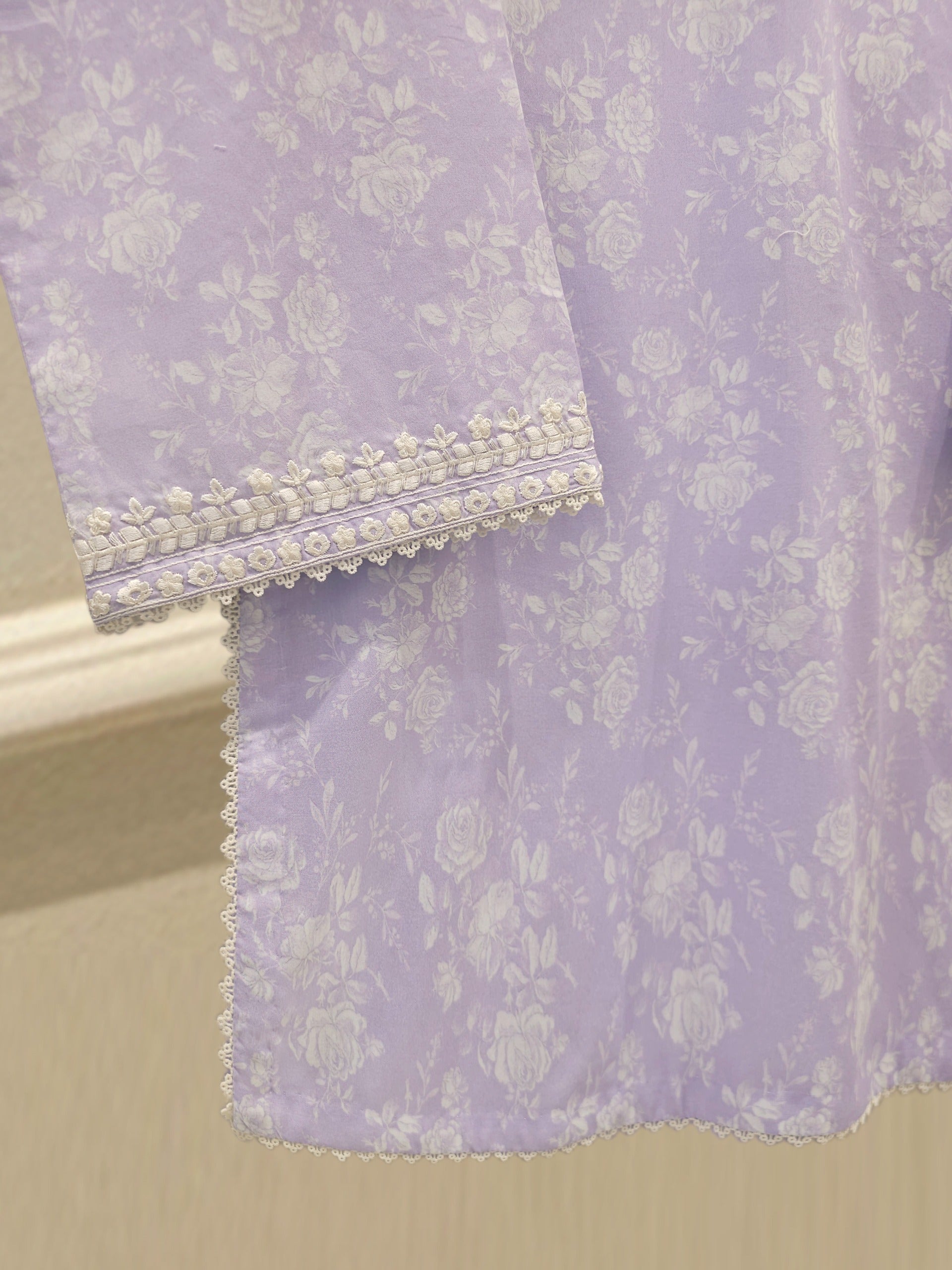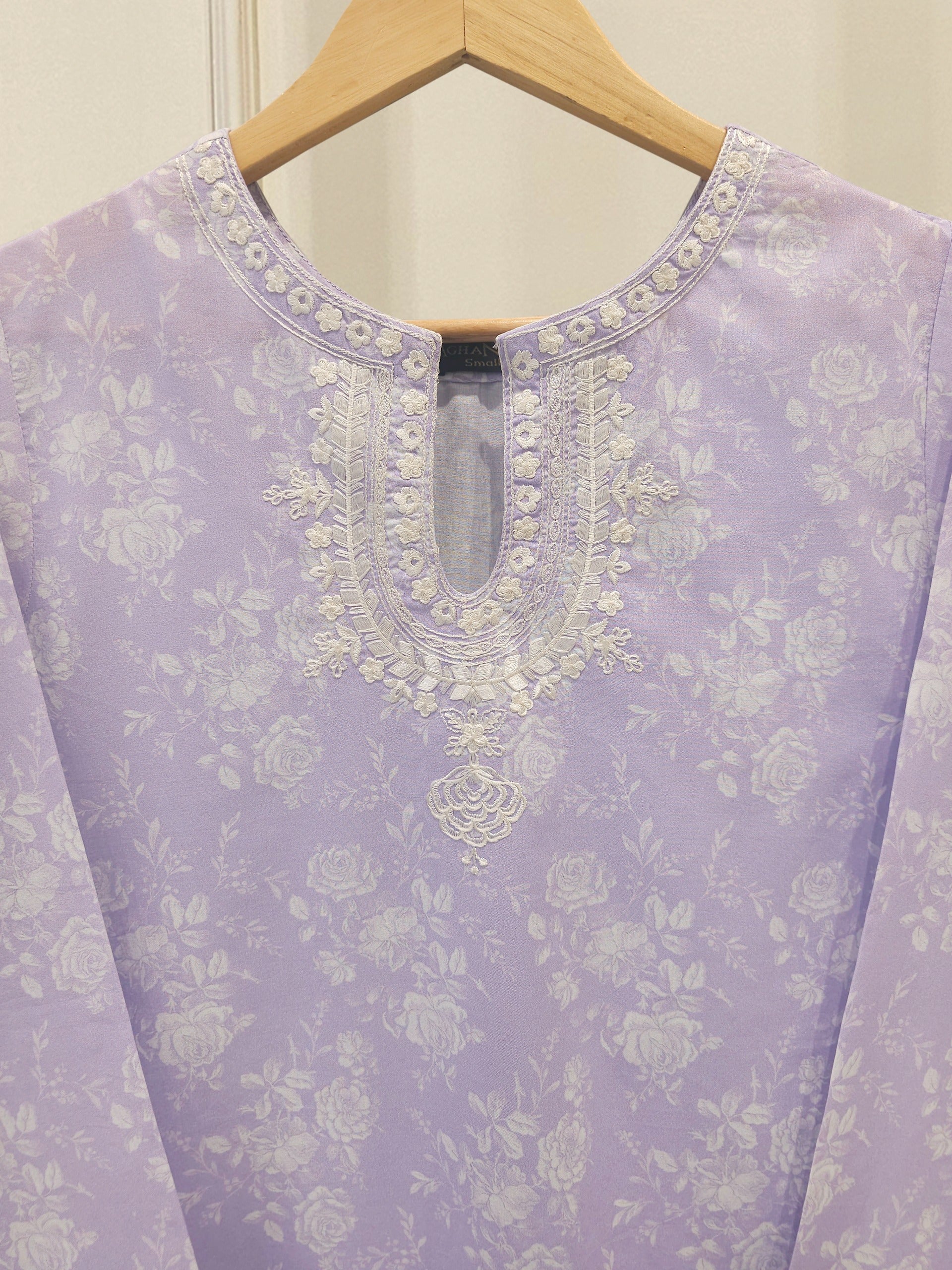 Elevate your summer wardrobe with this beautifully crafted purple lawn shirt, featuring intricate Chikan Kari work on the sleeves and daman. Designed for timeless elegance, this piece blends breathable lawn fabric with traditional craftsmanship, perfect for festive occasions or casual sophistication. Pair it with pants for a complete look.