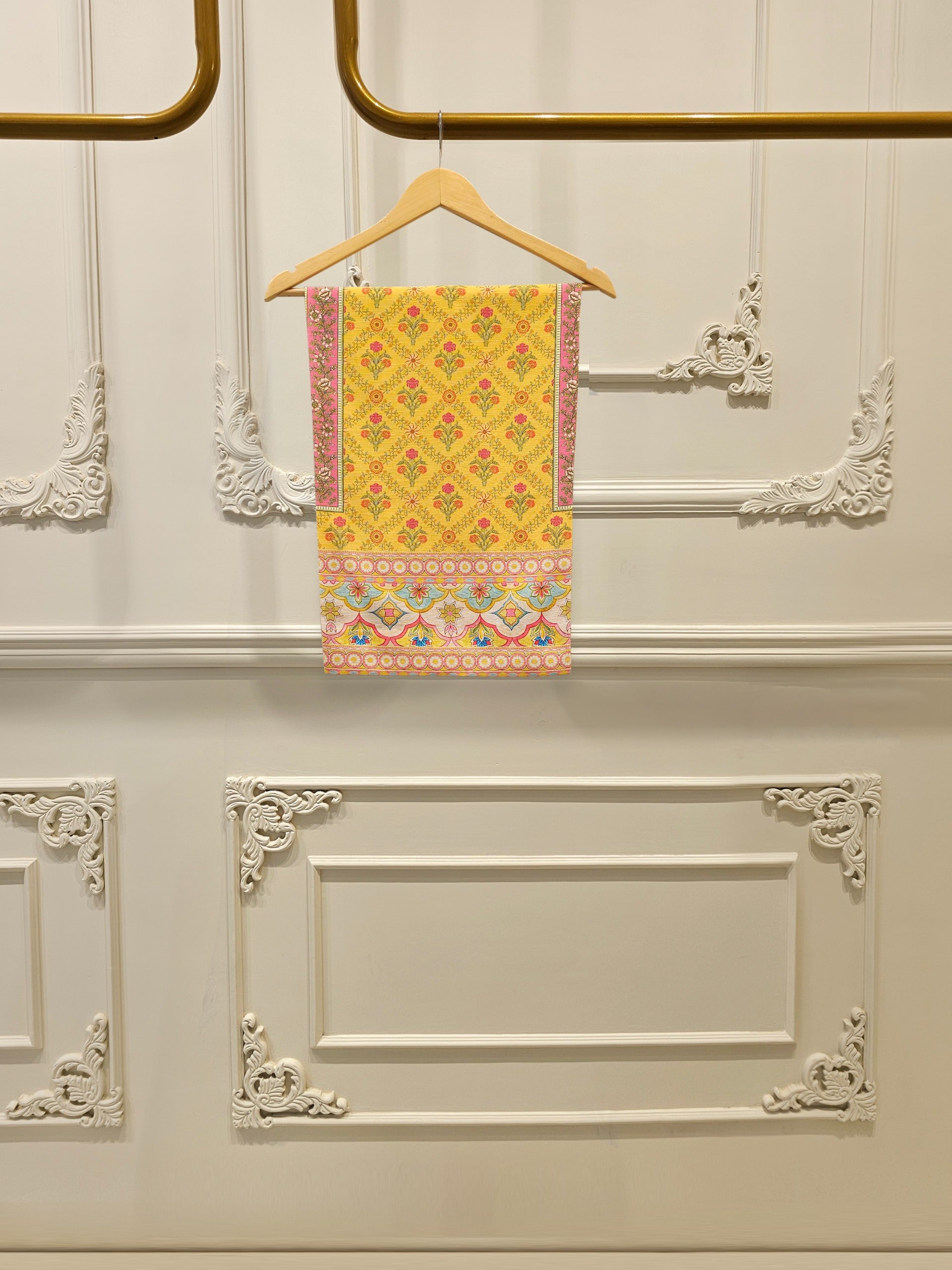 Yellow printed khaddar suit features a rich, traditional design on a warm, textured fabric ideal for cooler weather. The intricate prints add a touch of elegance, while the soft yet durable khaddar material ensures comfort and style for everyday wear or casual gatherings. Perfect for autumn and winter seasons.