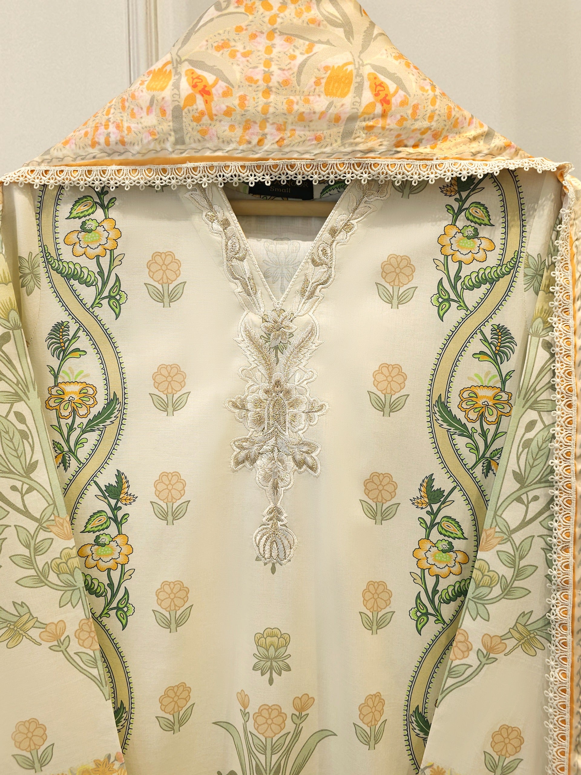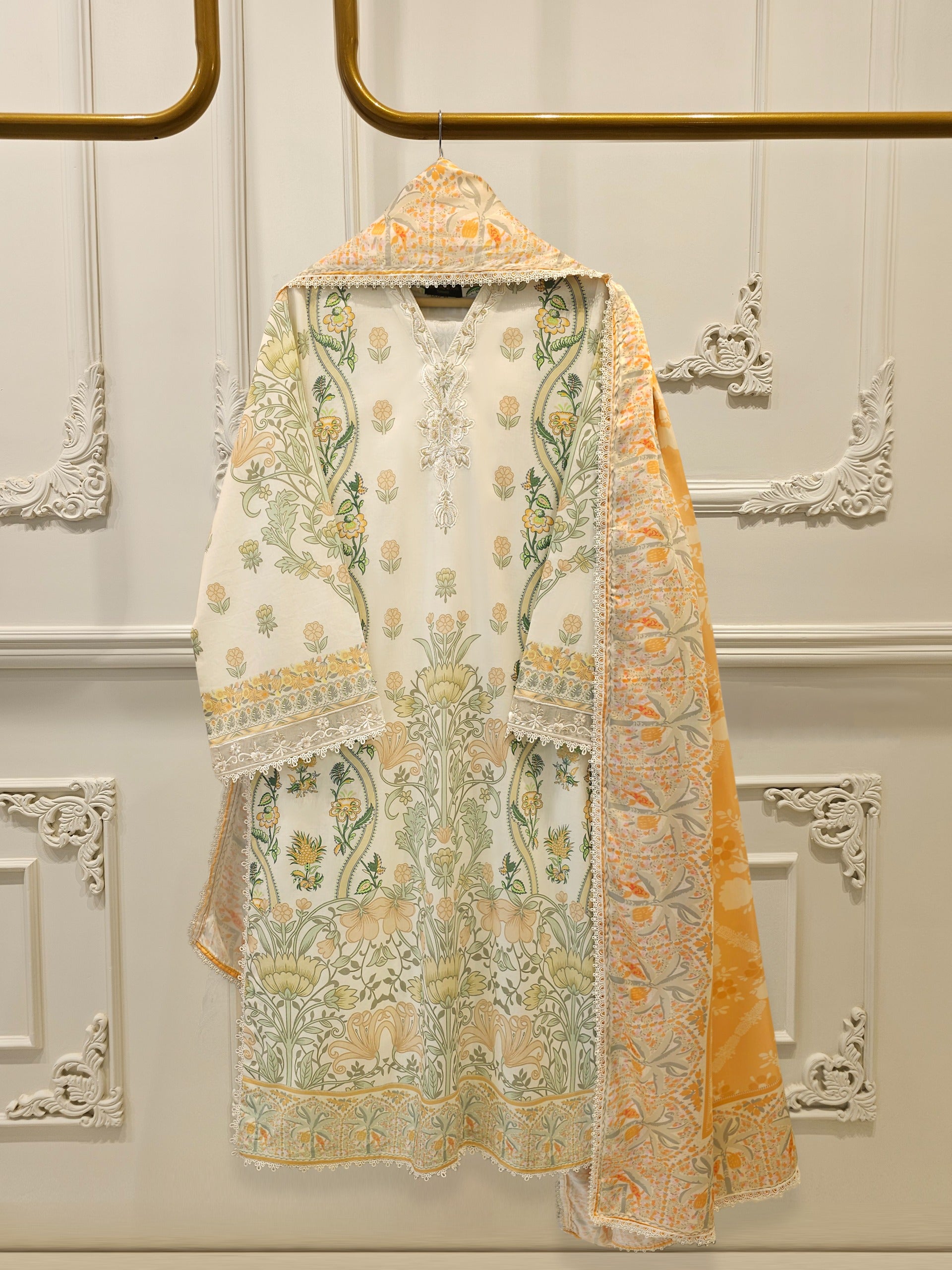 Introducing our vibrant and fashionable lawn shirt with dupatta perfect for adding a touch of elegance and style to your wardrobe. Made from high-quality lawn fabric, this shirt offers comfort and breathability, making it an ideal choice.
