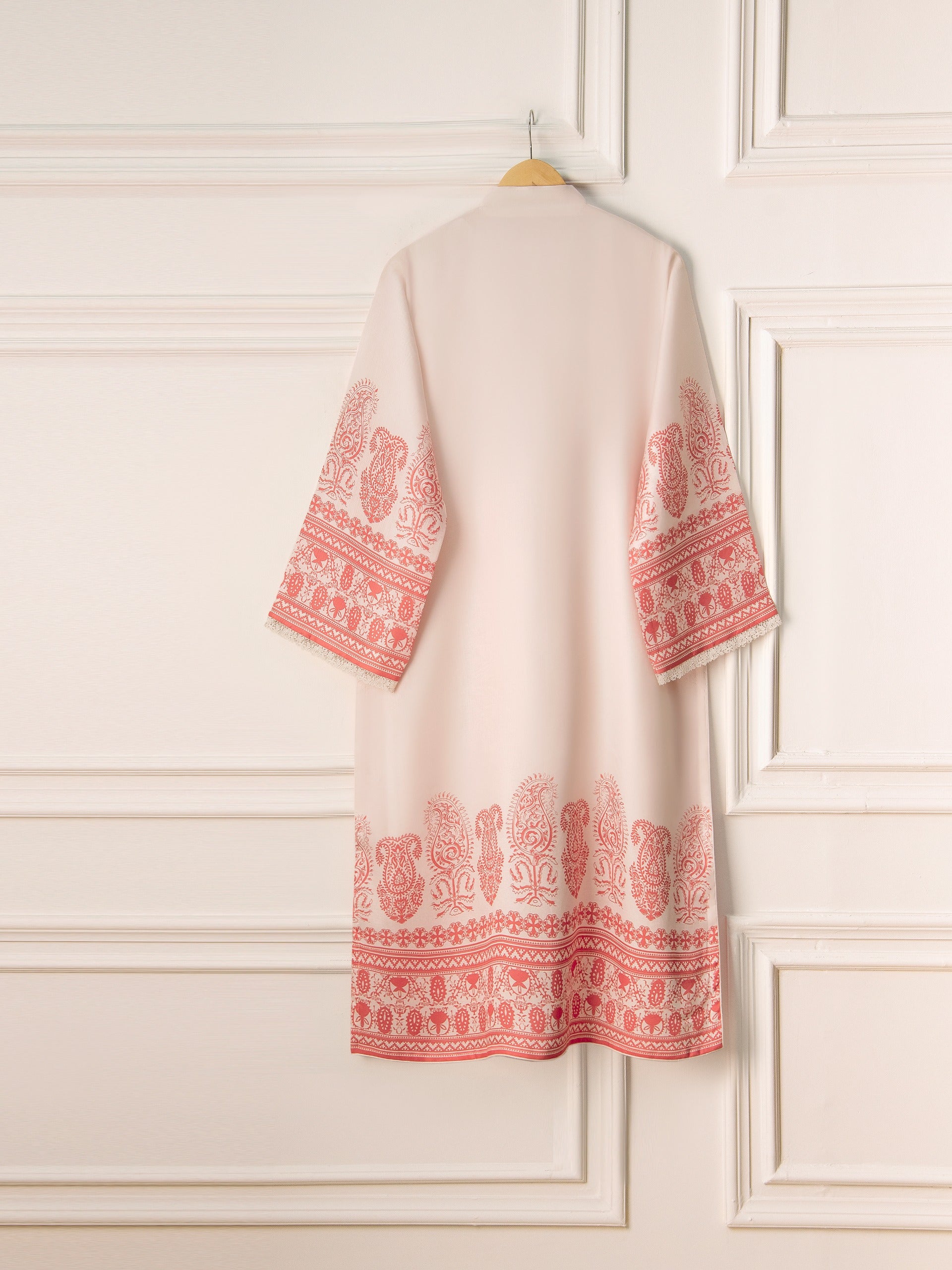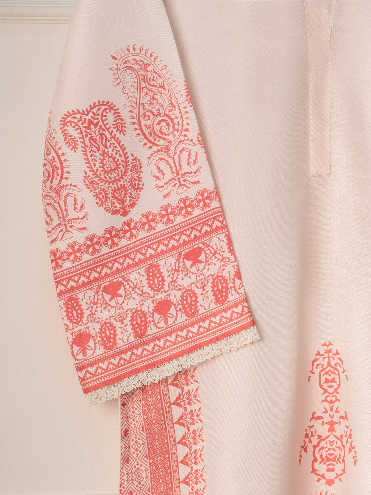 Embrace the festivities of the season in style with our pink two-piece accented with intricate print. Our exquisite suit is crafted in marina fabric, printing elegance and grace. The ensemble is paired with dupatta.