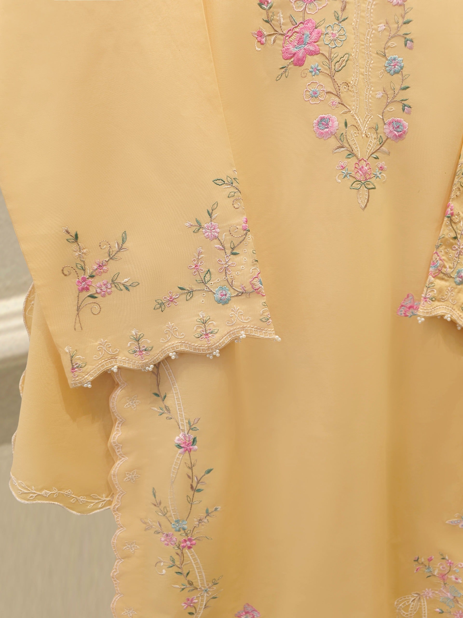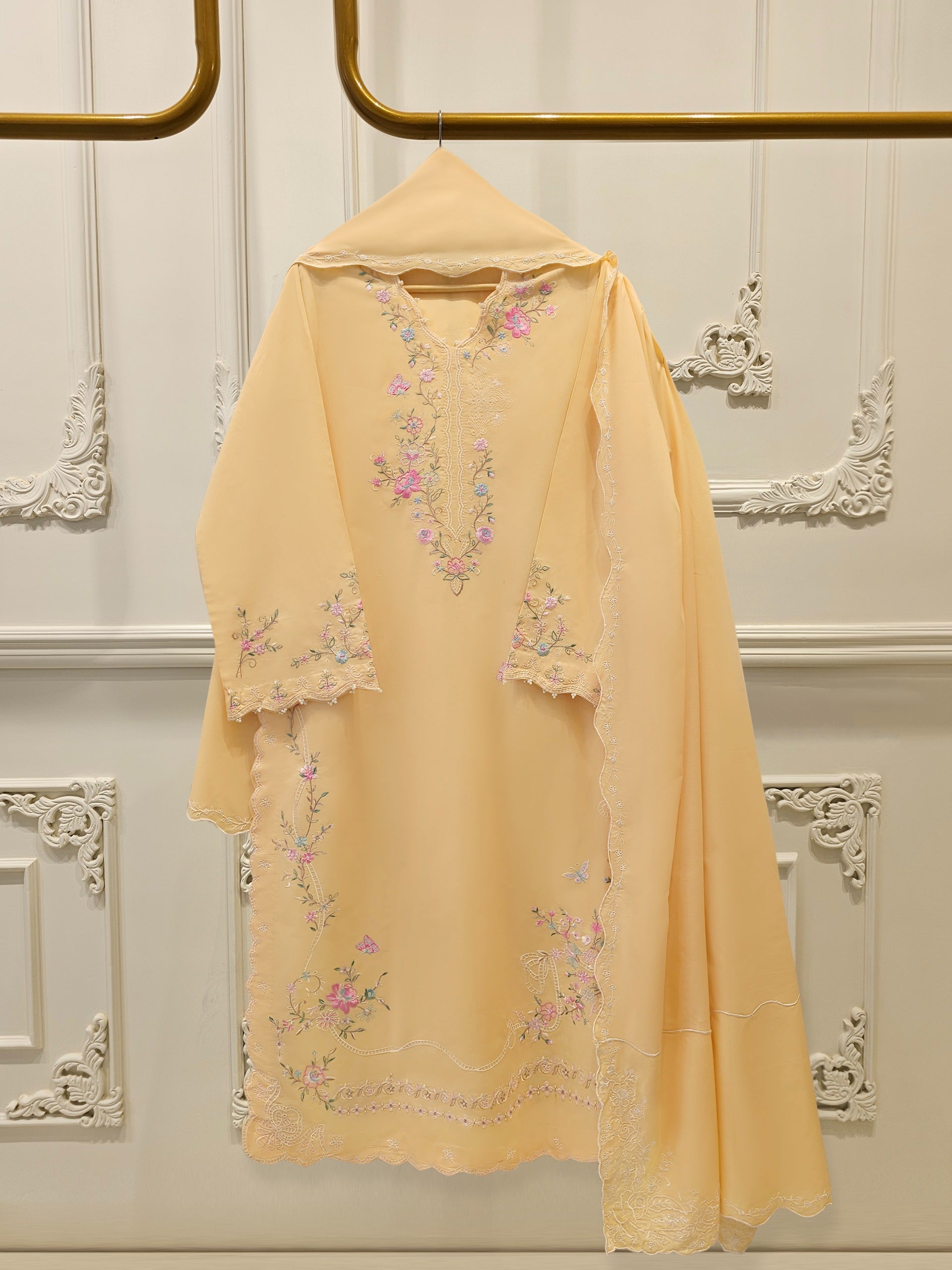 Elevate your summer wardrobe with this beautifully crafted yellow cambric shirt, Designed for timeless elegance, this piece blends breathable lawn fabric with traditional craftsmanship, perfect for festive occasions or casual sophistication. Pair it with shalwr for a complete look.