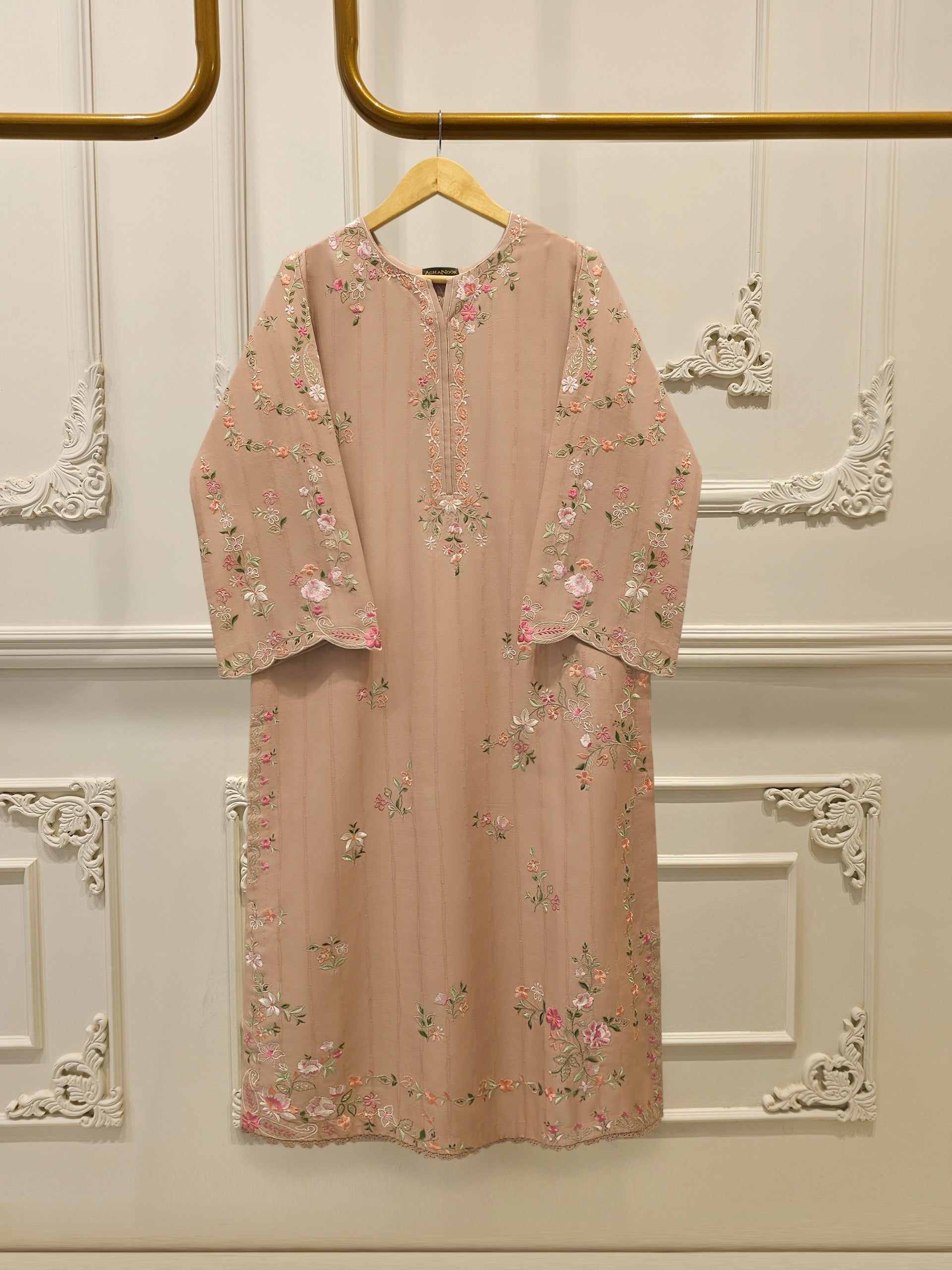 Elevate your summer wardrobe with this beautifully crafted tea pink cambric shirt, Designed for timeless elegance, this piece blends breathable lawn fabric with traditional craftsmanship, perfect for festive occasions or casual sophistication. Pair it with shalwr for a complete look.