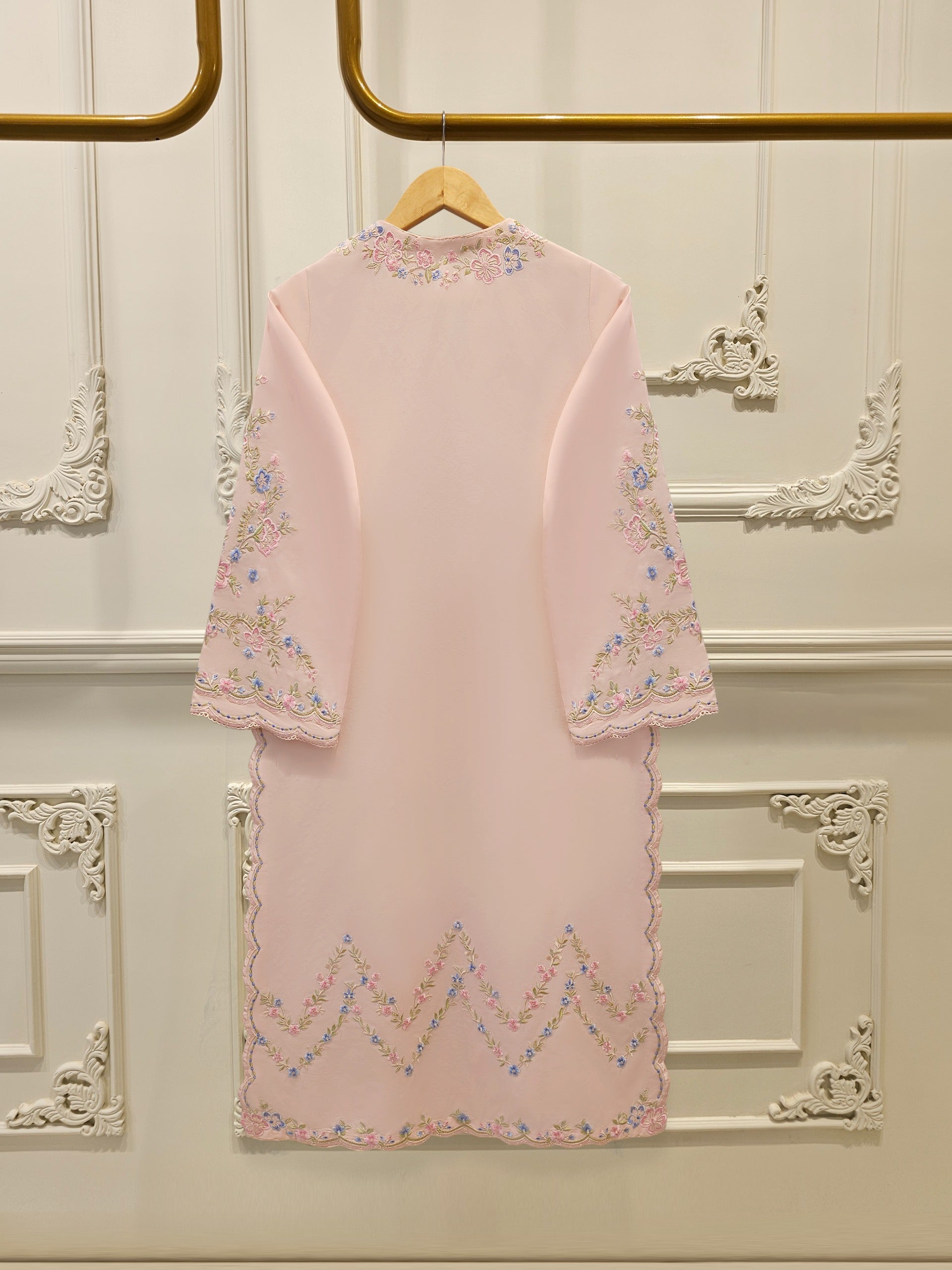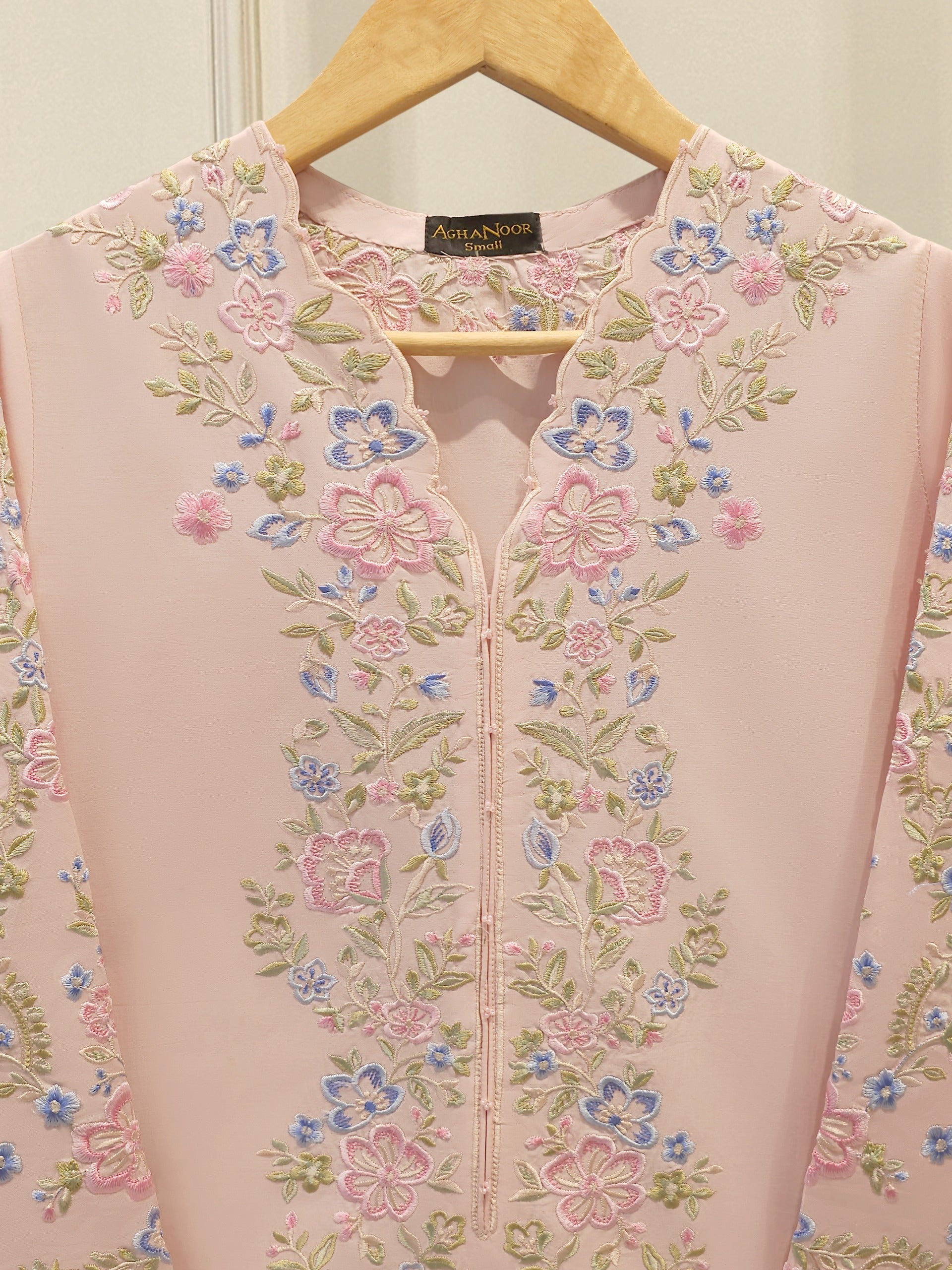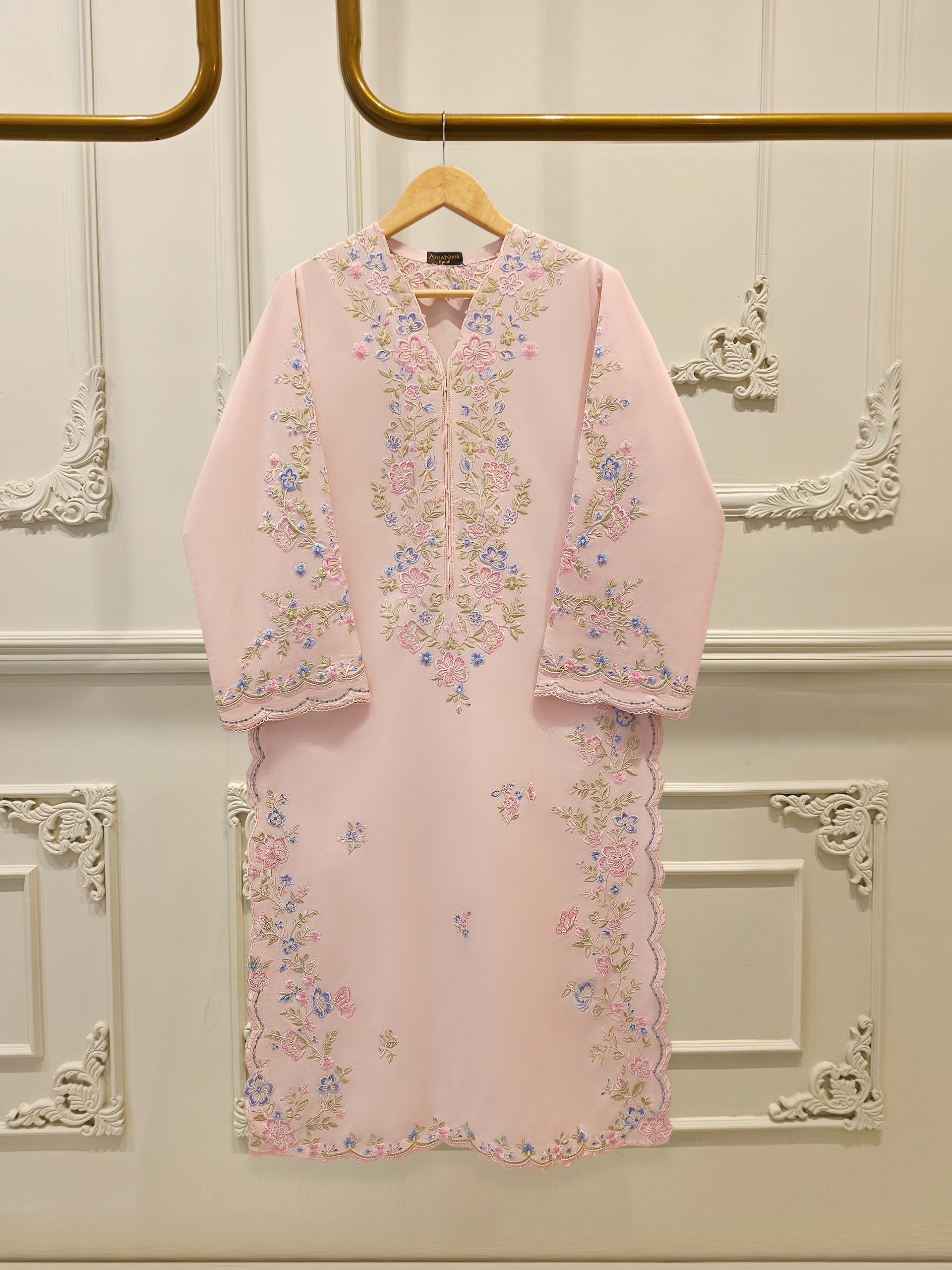 Elevate your summer wardrobe with this beautifully crafted pink cambric shirt, featuring intricate Chikan Kari work on the sleeves and daman. Designed for timeless elegance, this piece blends breathable lawn fabric with traditional craftsmanship, perfect for festive occasions or casual sophistication. Pair it with pants for a complete look.