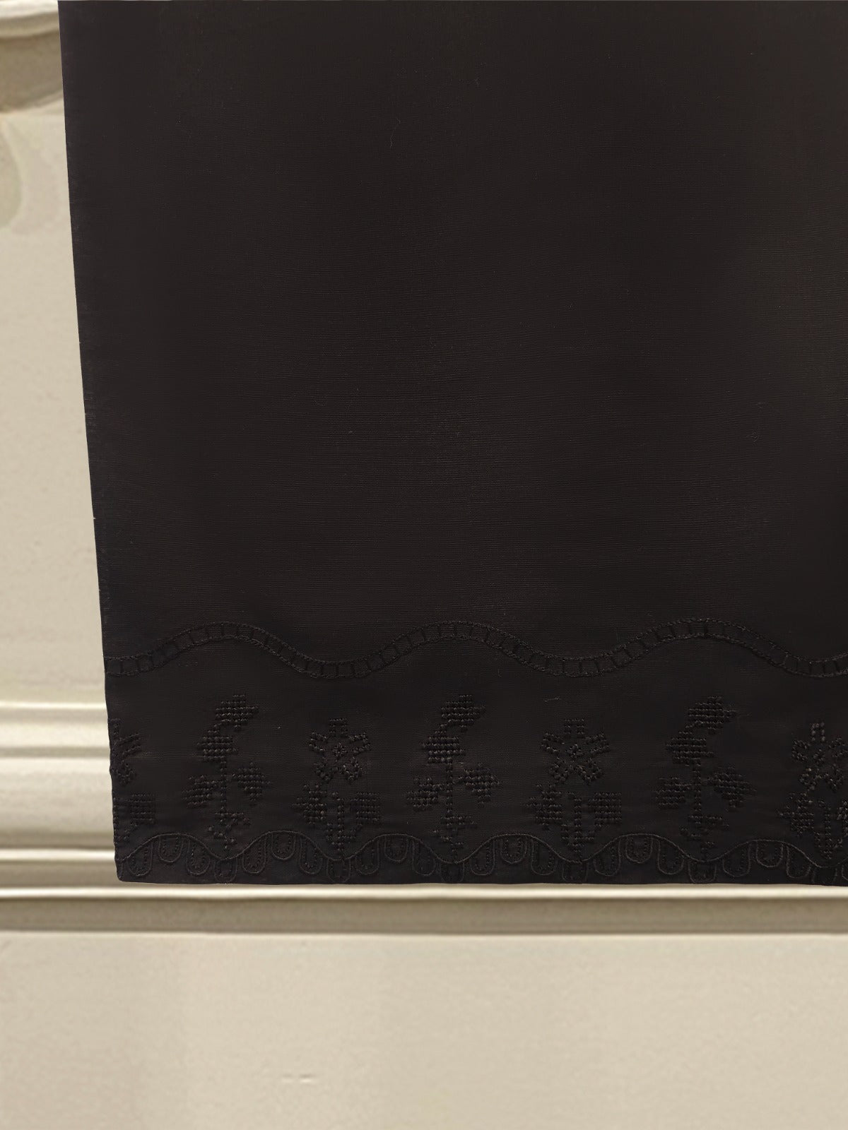 Elevate your summer wardrobe with this beautifully crafted black cambric shirt, featuring intricate Chikan Kari work on the sleeves and daman. Designed for timeless elegance, this piece blends breathable lawn fabric with traditional craftsmanship, perfect for festive occasions or casual sophistication. Pair it with pants for a complete look.