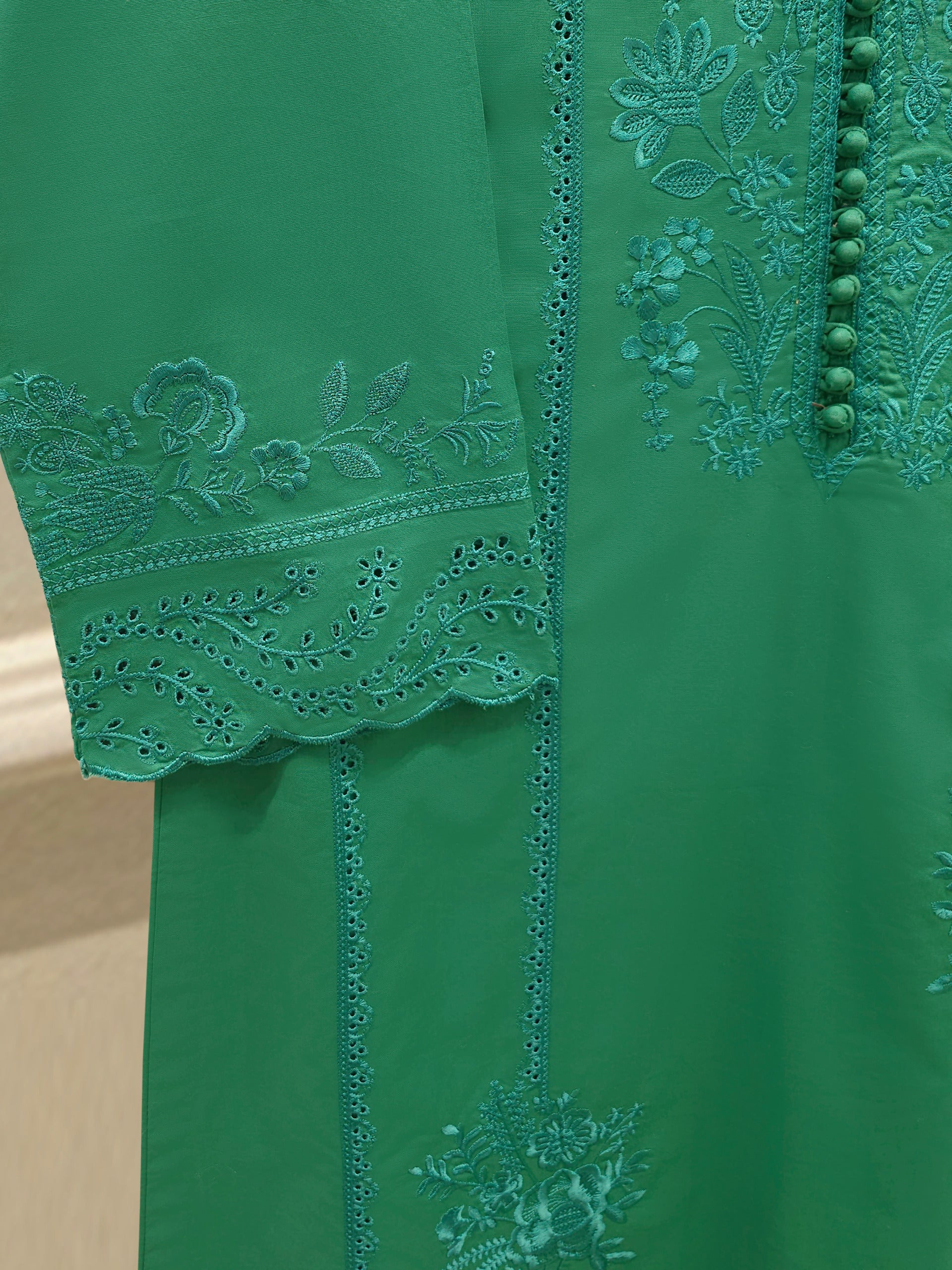 Elevate your summer wardrobe with this beautifully crafted green cambric shirt, Designed for timeless elegance, this piece blends breathable lawn fabric with traditional craftsmanship, perfect for festive occasions or casual sophistication. Pair it with shalwr for a complete look.