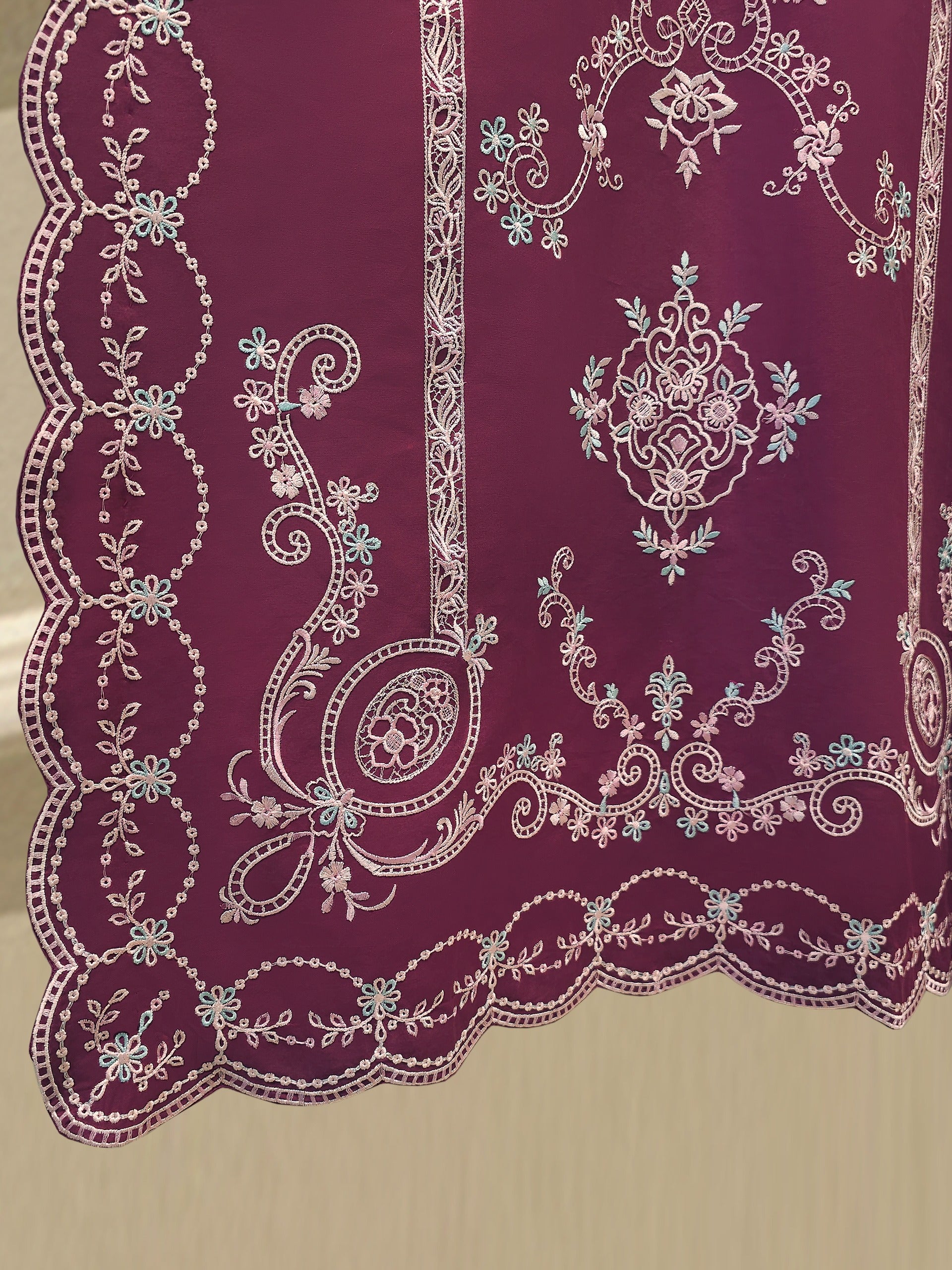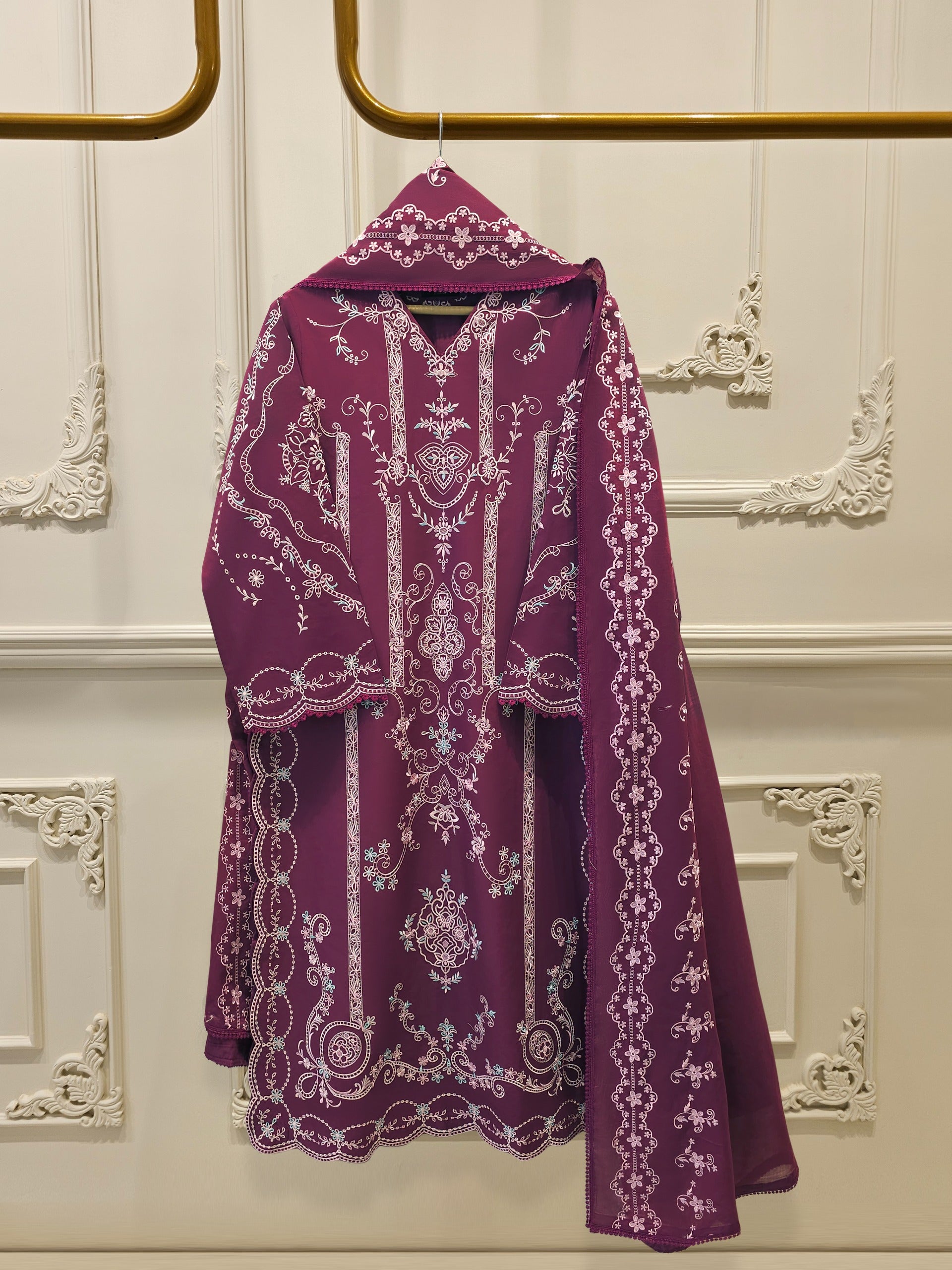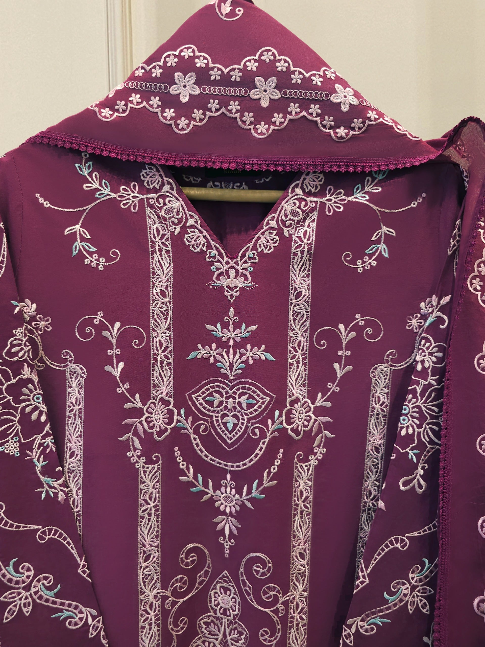 Elevate your summer wardrobe with this beautifully crafted purple lawn shirt, featuring intricate Chikan Kari work on the sleeves and daman. Designed for timeless elegance, this piece blends breathable lawn fabric with traditional craftsmanship, perfect for festive occasions or casual sophistication. Pair it with pants for a complete look.