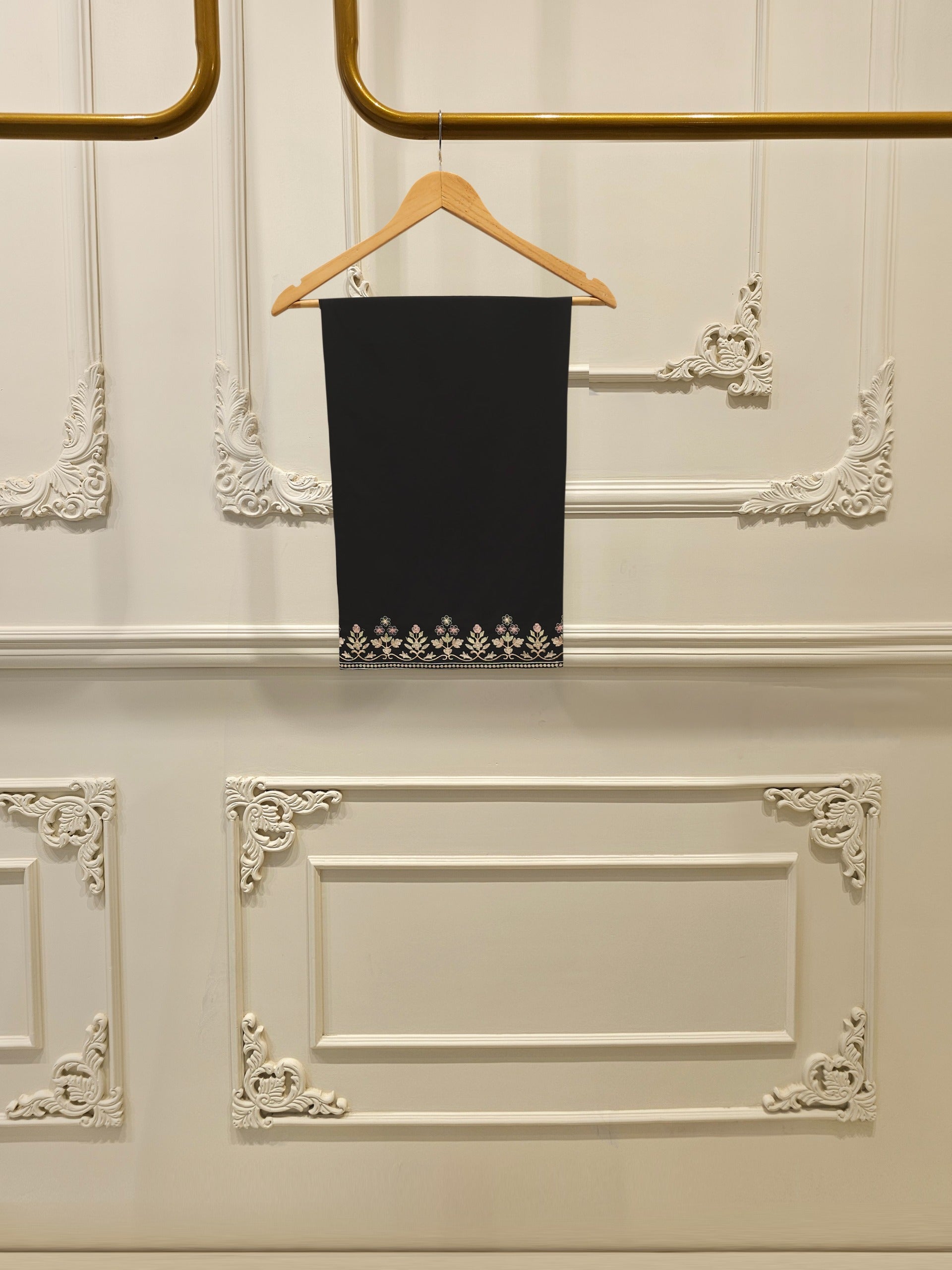 Elevate your summer wardrobe with this beautifully crafted black lawn shirt, featuring intricate Chikan Kari work on the sleeves and daman. Designed for timeless elegance, this piece blends breathable lawn fabric with traditional craftsmanship, perfect for festive occasions or casual sophistication. Pair it with pants for a complete look.
