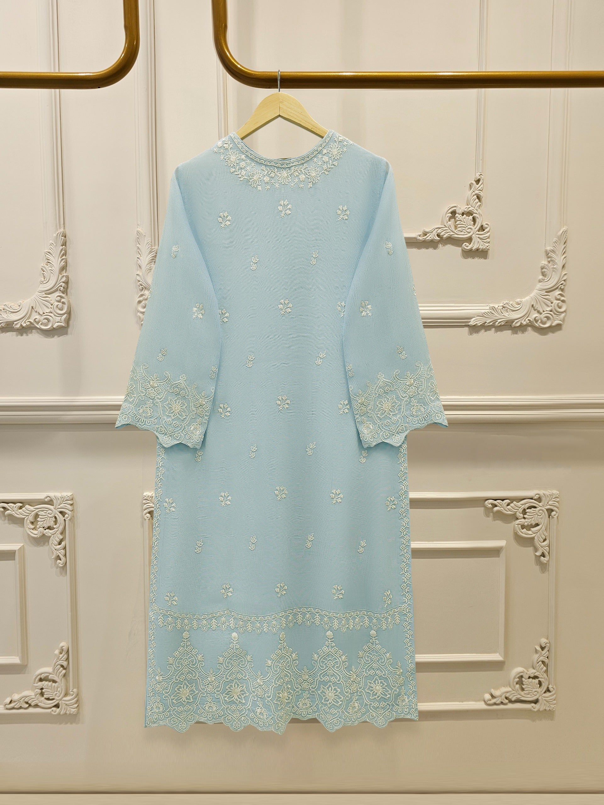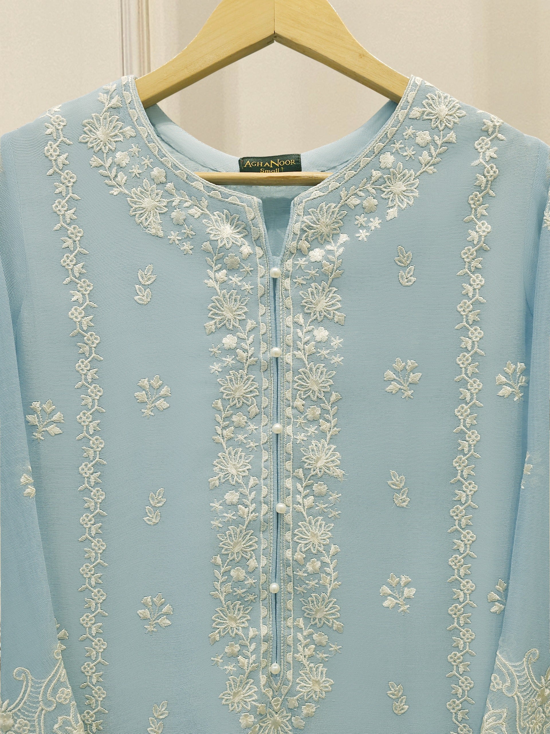 Introducing our elegant embroidered cotton net shirt with pants a perfect choice for those who appreciate intricate detailing and graceful style. Crafted from high-quality cotton net fabric, this shirt offers a lightweight and luxurious feel, allowing you to feel comfortable and chic throughout the day. The set comes with a matching pant which enhances the overall look and adds a touch of finesse to your outfit.