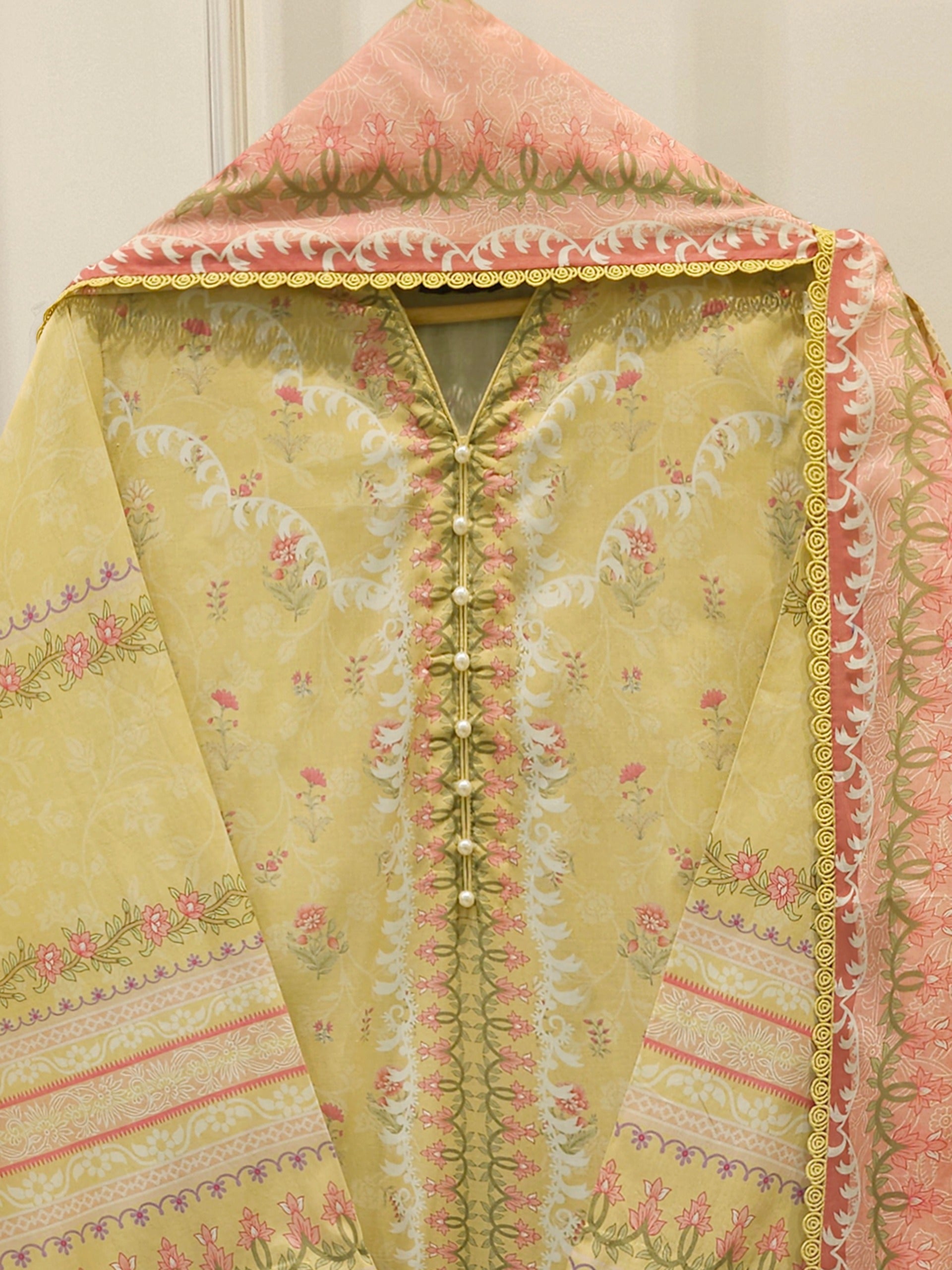 A cambric digital printed suit is crafted from soft, lightweight cambric fabric, offering a smooth feel and breathable comfort. Featuring vibrant digital prints with fine detailing, it delivers rich colors and a polished look, making it perfect for everyday wear as well as casual outings.