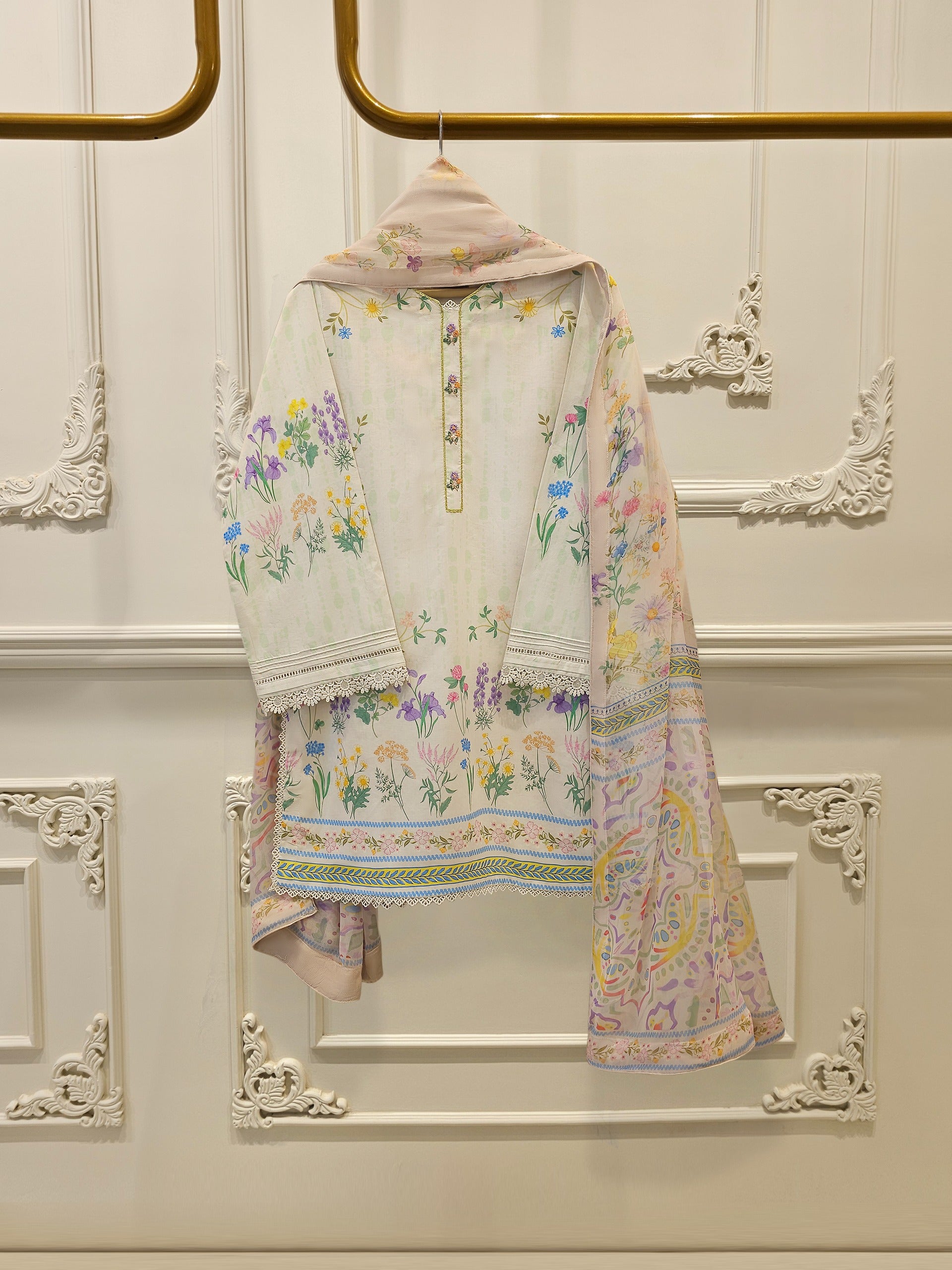 Introducing our vibrant and fashionable lawn shirt with shalwar & dupatta perfect for adding a touch of elegance and style to your wardrobe. Made from high-quality lawn fabric, this shirt offers comfort and breathability, making it an ideal choice.