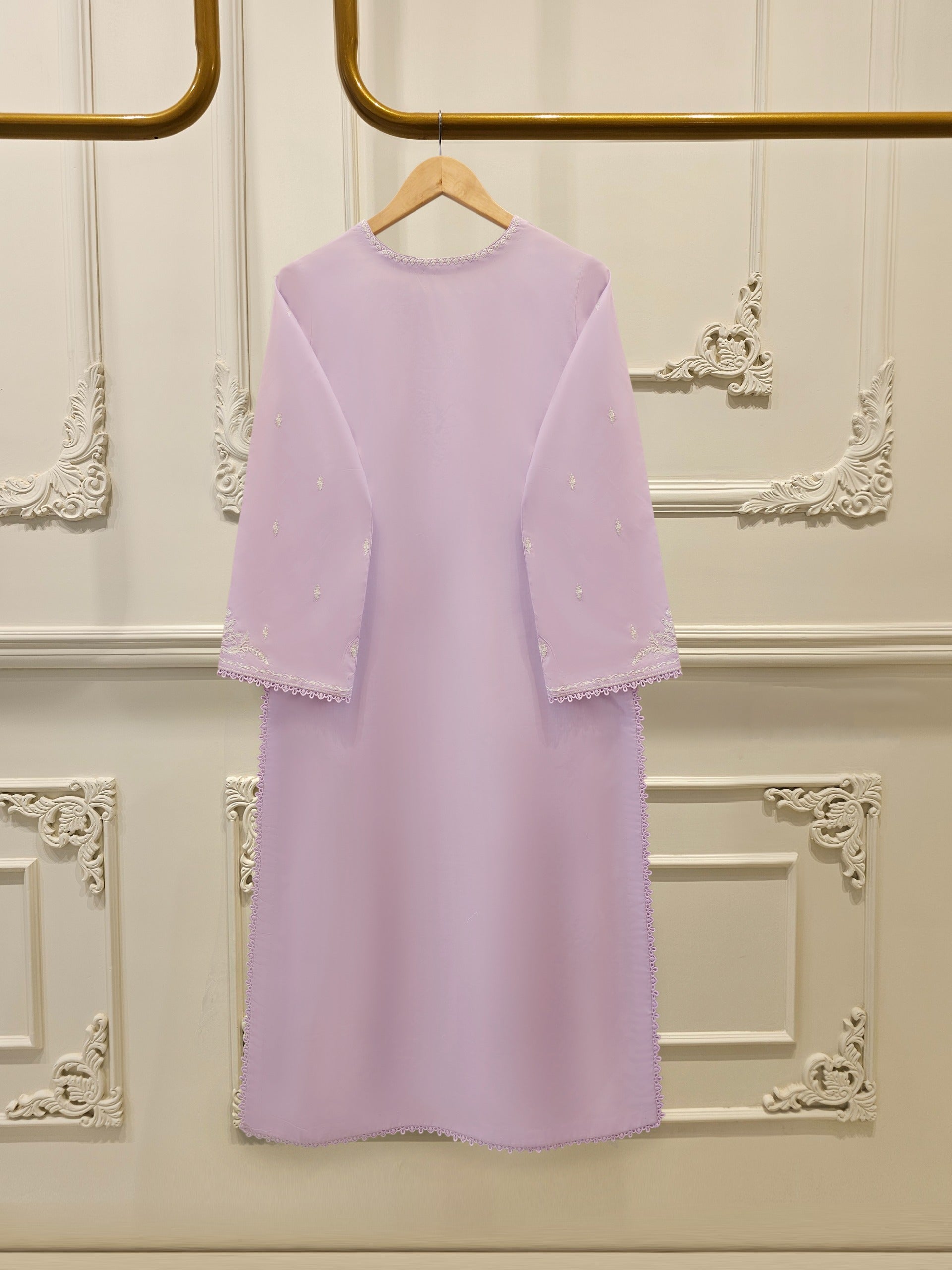 Elevate your summer wardrobe with this beautifully crafted lilac cambric shirt, Designed for timeless elegance, this piece blends breathable lawn fabric with traditional craftsmanship, perfect for festive occasions or casual sophistication. Pair it with shalwr for a complete look.