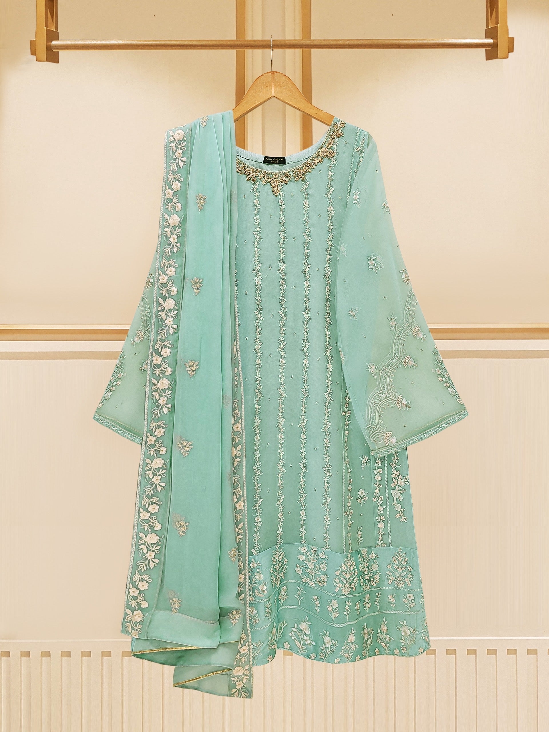 Introducing our elegant embroidered chiffon shirt with pants & dupatta a perfect choice for those who appreciate intricate detailing and graceful style. Crafted from high-quality chiffon fabric, this shirt offers a lightweight and luxurious feel, allowing you to feel comfortable and chic throughout the day. The set comes with matching pants which enhances the overall look and adds a touch of finesse to your outfit.