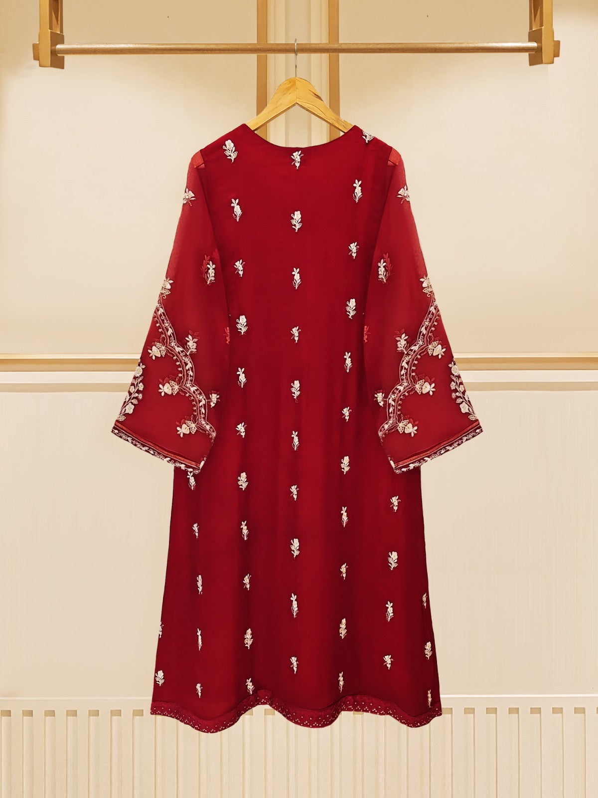 Introducing our elegant embroidered chiffon shirt with pants & dupatta a perfect choice for those who appreciate intricate detailing and graceful style. Crafted from high-quality chiffon fabric, this shirt offers a lightweight and luxurious feel, allowing you to feel comfortable and chic throughout the day. The set comes with matching pants which enhances the overall look and adds a touch of finesse to your outfit.