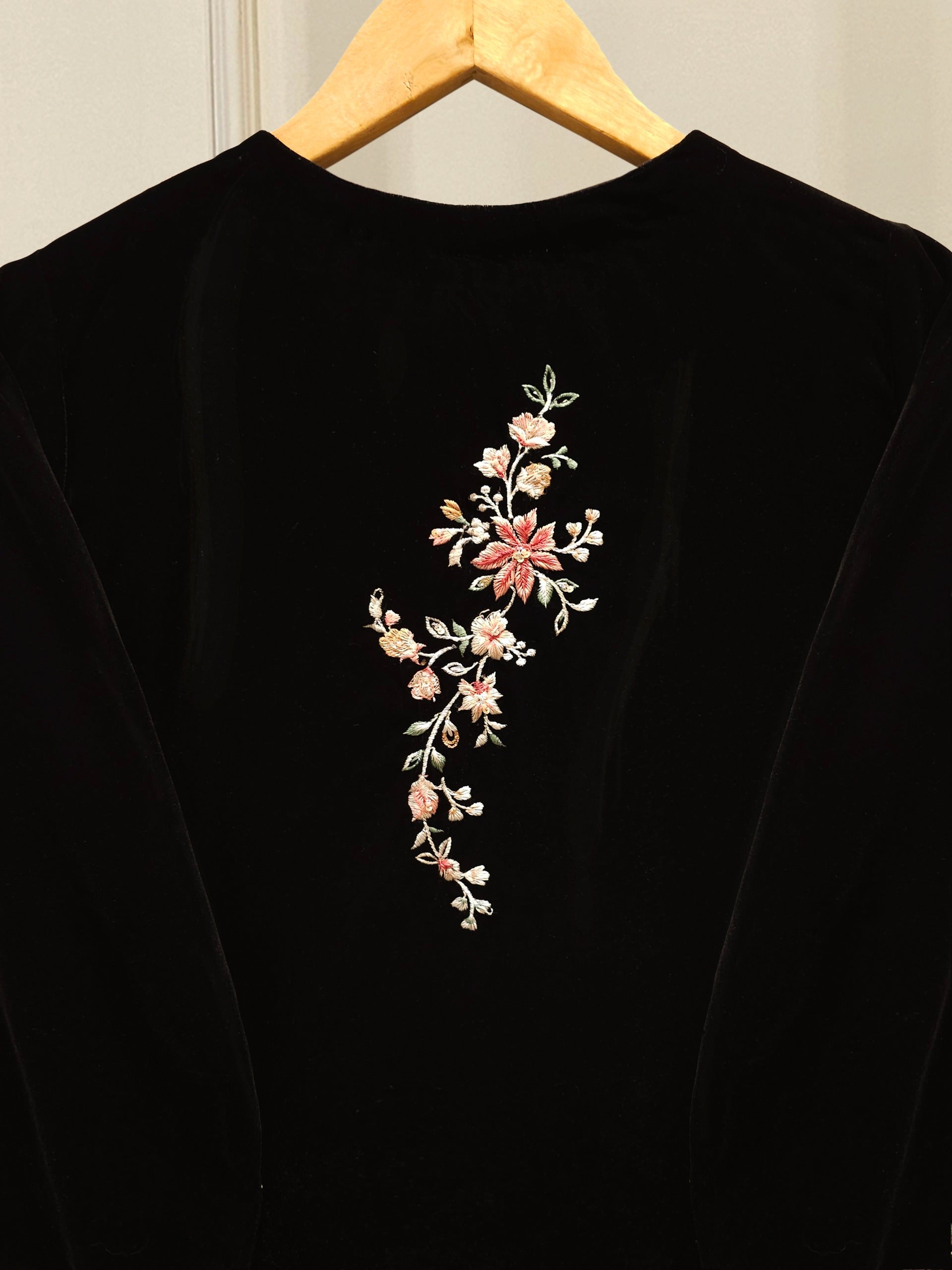 A black velvet dress exudes timeless elegance and sophistication. Crafted from luxuriously soft velvet, it catches the light beautifully, creating a rich, deep sheen. The deep maroon hue adds a touch of regal charm, making it perfect.