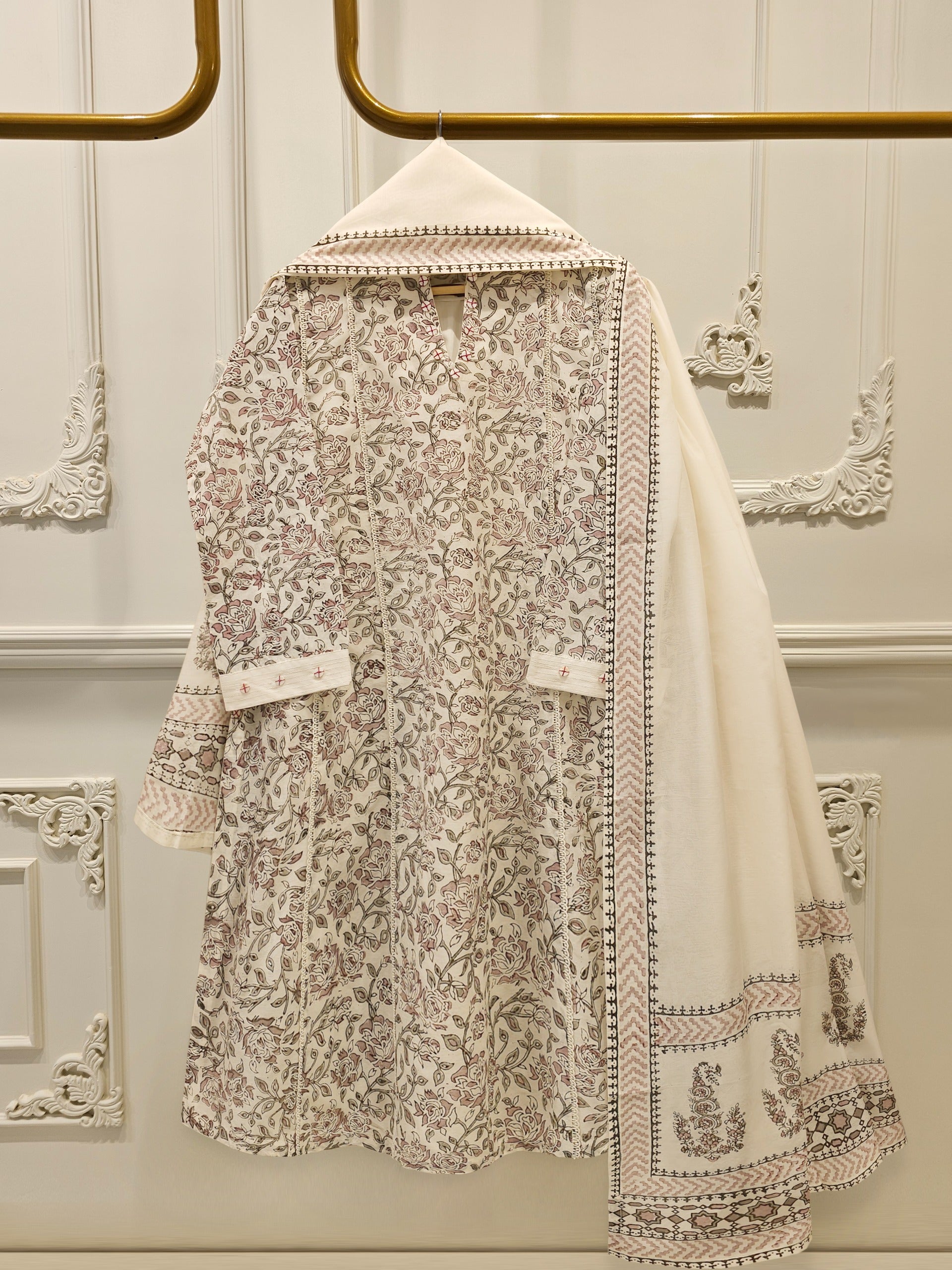 3 Piece - Hand Block Printed Kora Cotton Suit S112945