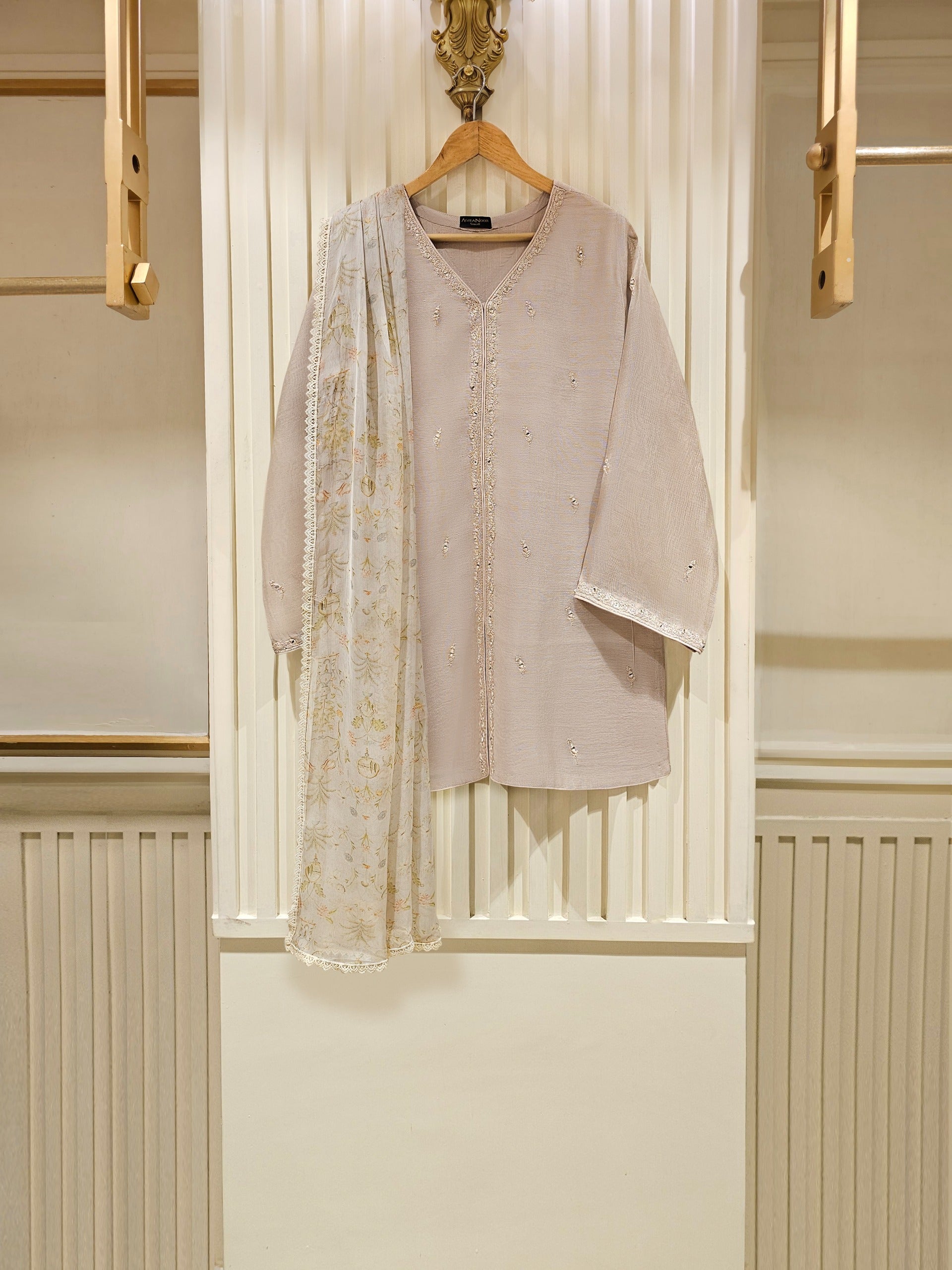 Introducing our elegant embroidered cotton net shirt with pants and dupatta a perfect choice for those who appreciate intricate detailing and graceful style. Crafted from high-quality cotton net fabric, this shirt offers a lightweight and luxurious feel, allowing you to feel comfortable and chic throughout the day. The set comes with a matching dupatta and pant which enhances the overall look and adds a touch of finesse to your outfit.