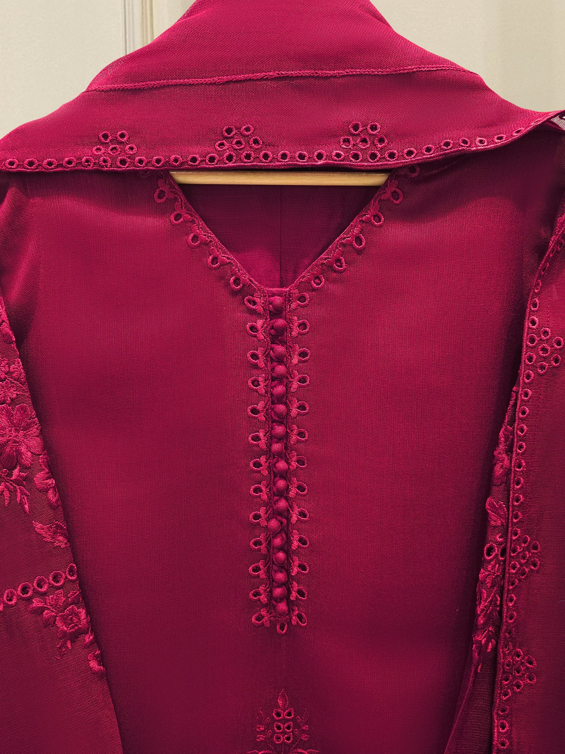 Introducing our elegant embroidered cotton net shirt with pants a perfect choice for those who appreciate intricate detailing and graceful style. Crafted from high-quality cotton net fabric, this shirt offers a lightweight and luxurious feel, allowing you to feel comfortable and chic throughout the day. The set comes with a matching dupatta and pant which enhances the overall look and adds a touch of finesse to your outfit.