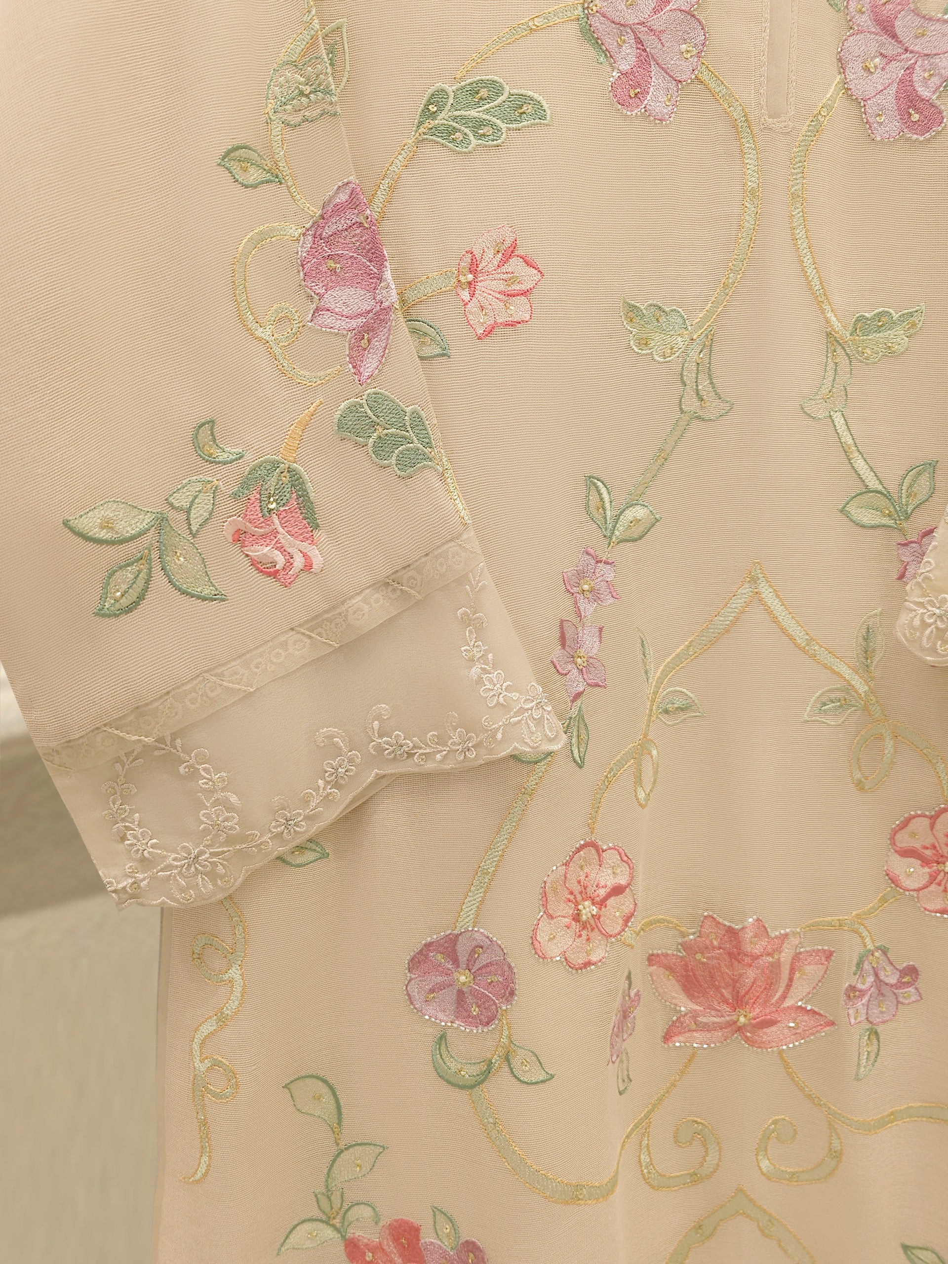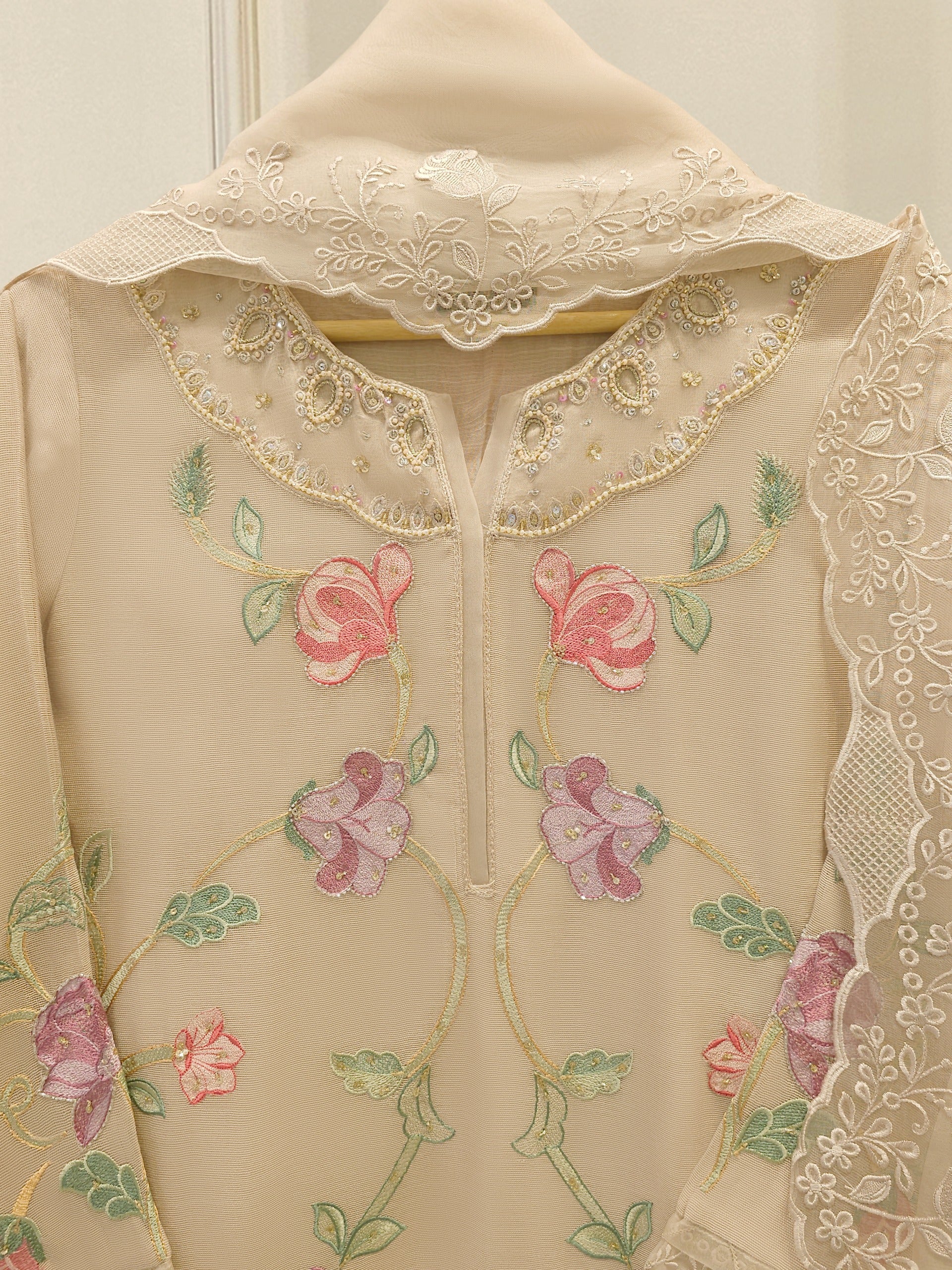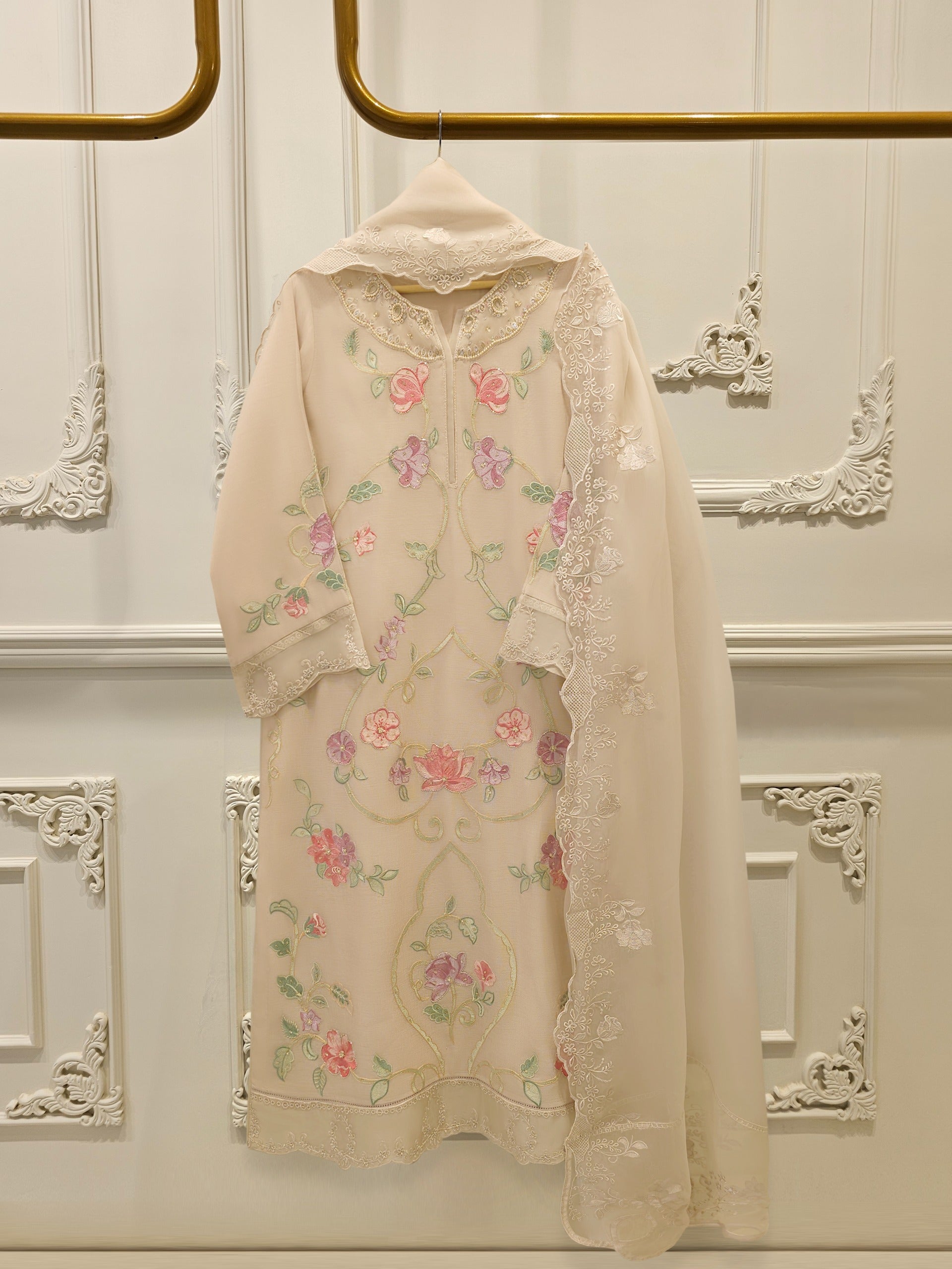 Introducing our elegant embroidered cotton net shirt with pants a perfect choice for those who appreciate intricate detailing and graceful style. Crafted from high-quality cotton net fabric, this shirt offers a lightweight and luxurious feel, allowing you to feel comfortable and chic throughout the day. The set comes with a matching dupatta and pant which enhances the overall look and adds a touch of finesse to your outfit.