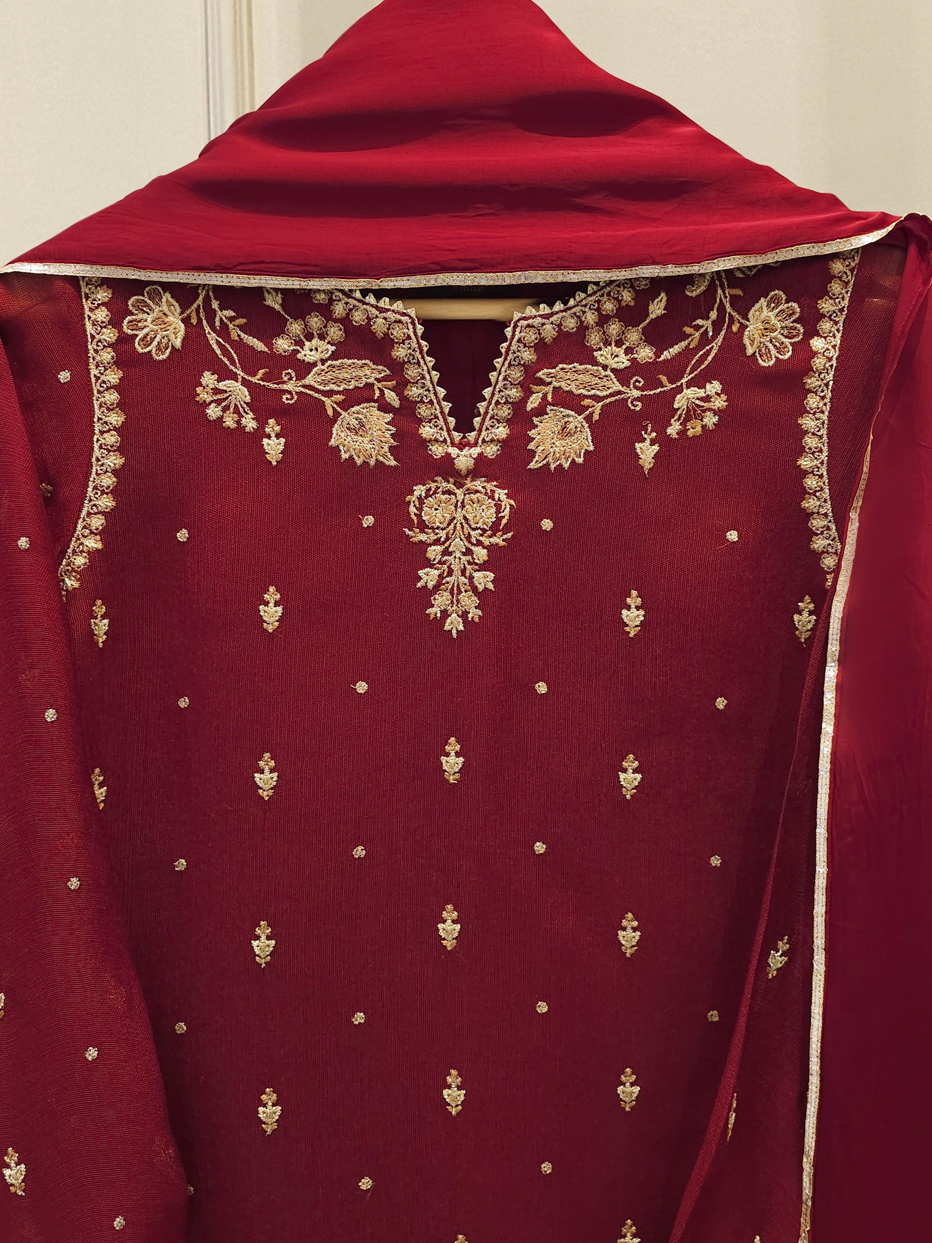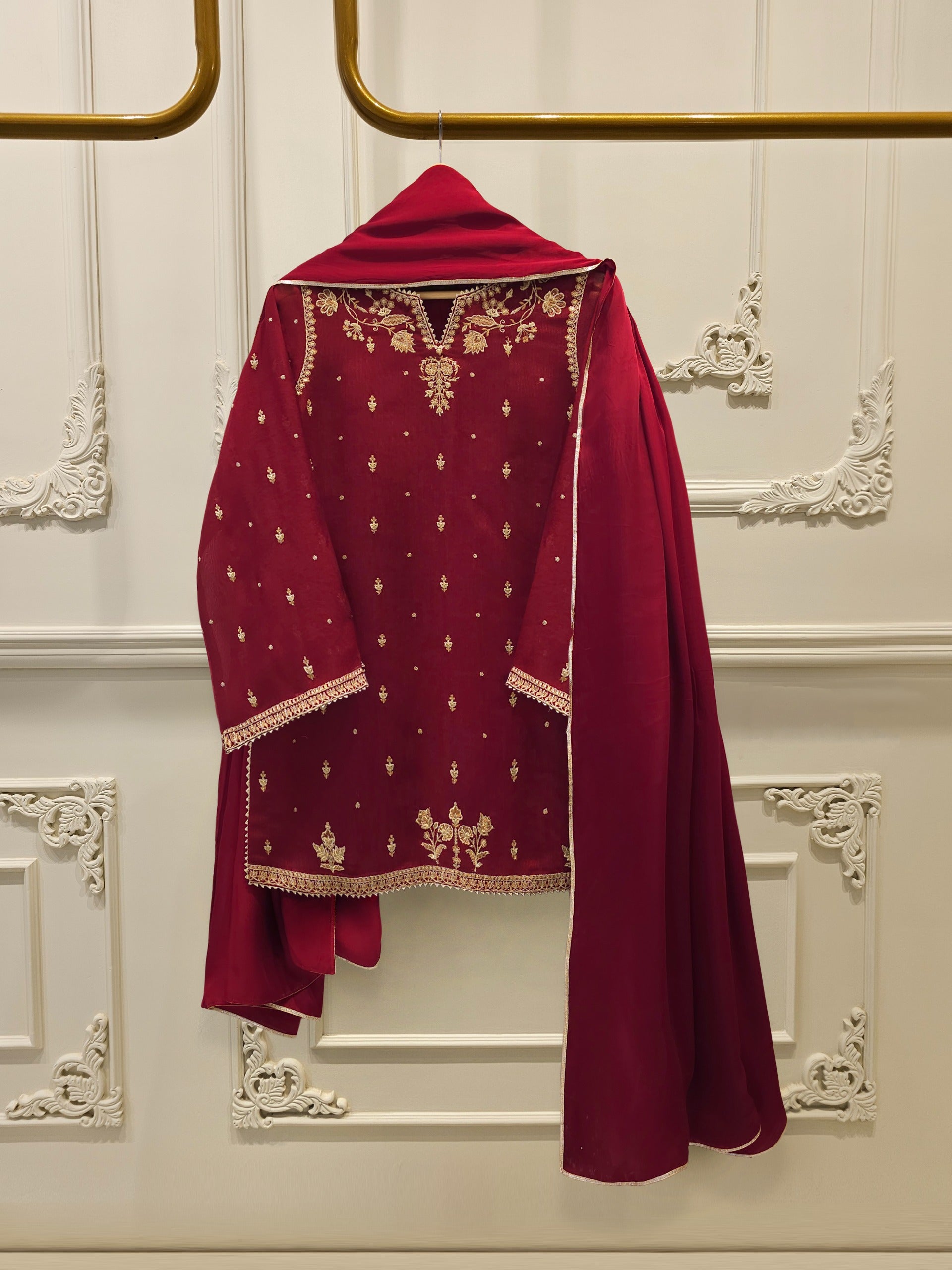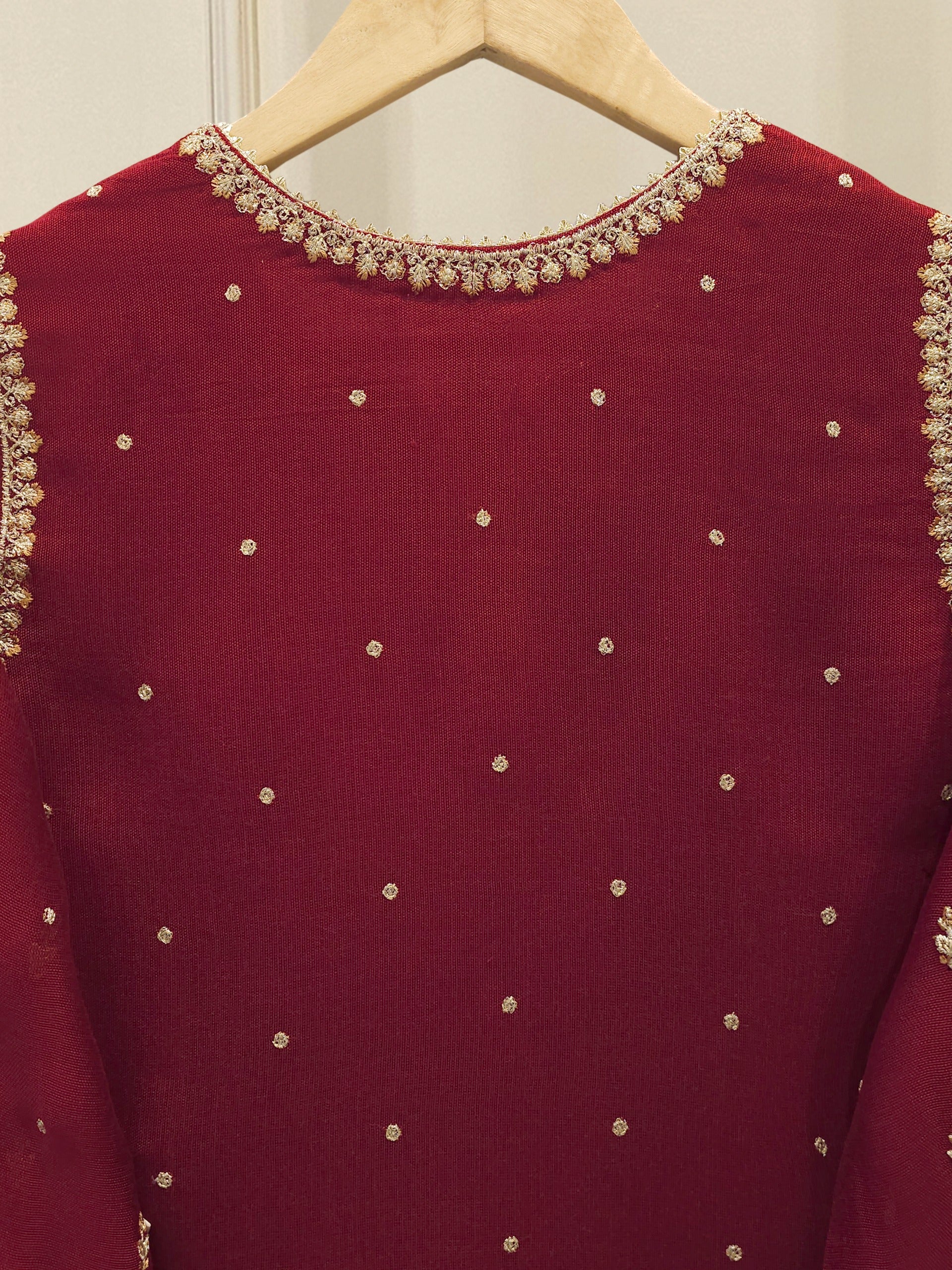 Introducing our elegant embroidered cotton net shirt with pants a perfect choice for those who appreciate intricate detailing and graceful style. Crafted from high-quality cotton net fabric, this shirt offers a lightweight and luxurious feel, allowing you to feel comfortable and chic throughout the day. The set comes with a matching pant which enhances the overall look and adds a touch of finesse to your outfit.