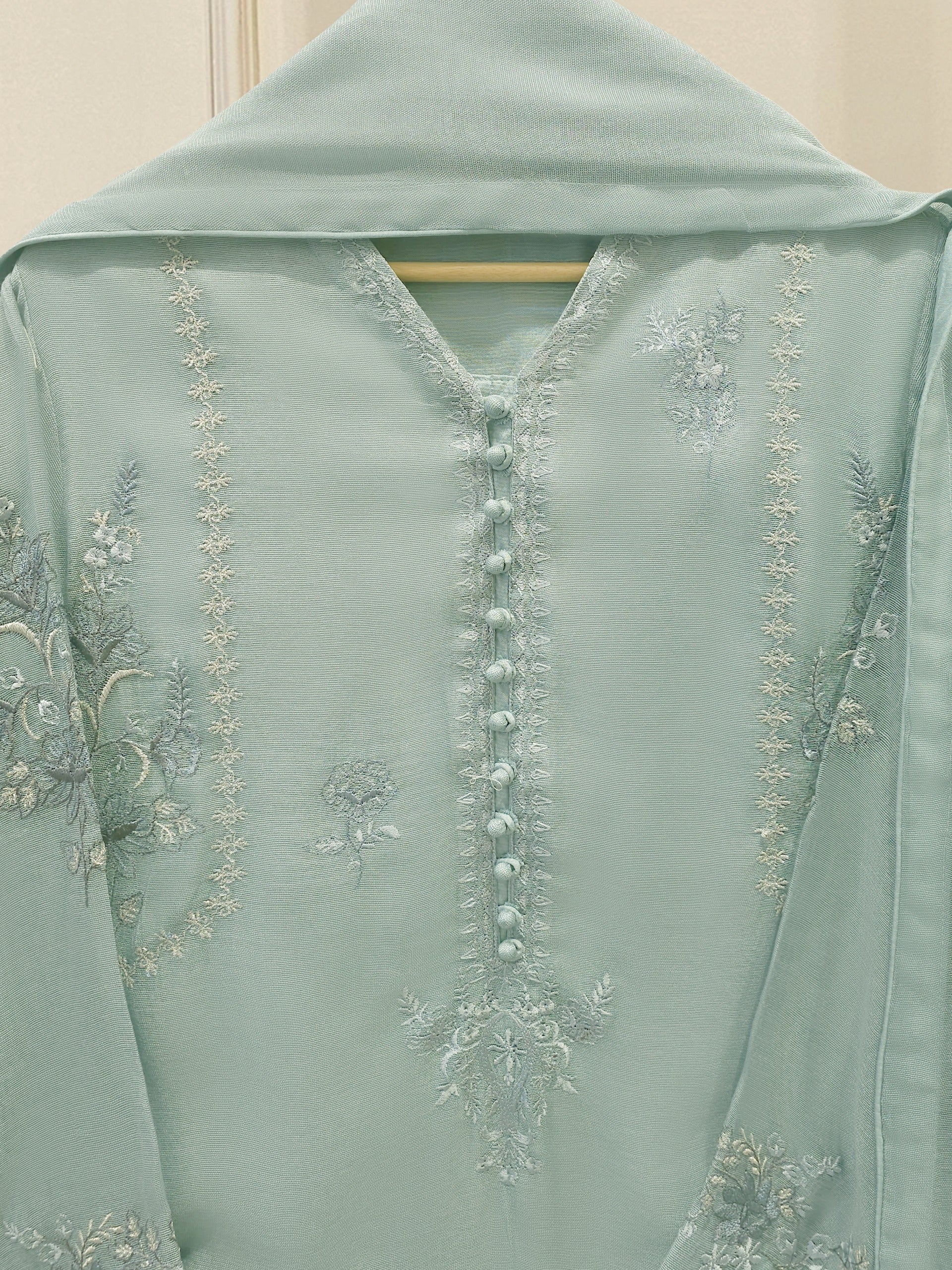 Introducing our elegant embroidered cotton net shirt with pants a perfect choice for those who appreciate intricate detailing and graceful style. Crafted from high-quality cotton net fabric, this shirt offers a lightweight and luxurious feel, allowing you to feel comfortable and chic throughout the day. The set comes with a matching pant which enhances the overall look and adds a touch of finesse to your outfit.
