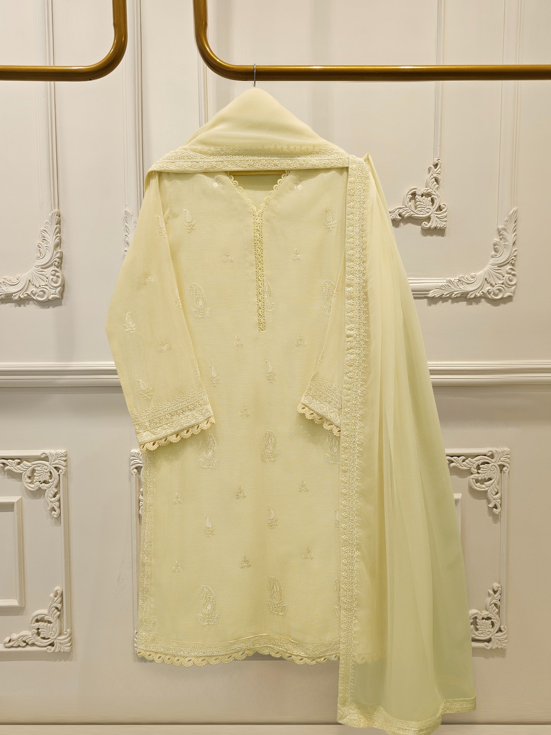 Introducing our elegant embroidered cotton net shirt with pants a perfect choice for those who appreciate intricate detailing and graceful style. Crafted from high-quality cotton net fabric, this shirt offers a lightweight and luxurious feel, allowing you to feel comfortable and chic throughout the day. The set comes with a matching pant which enhances the overall look and adds a touch of finesse to your outfit.