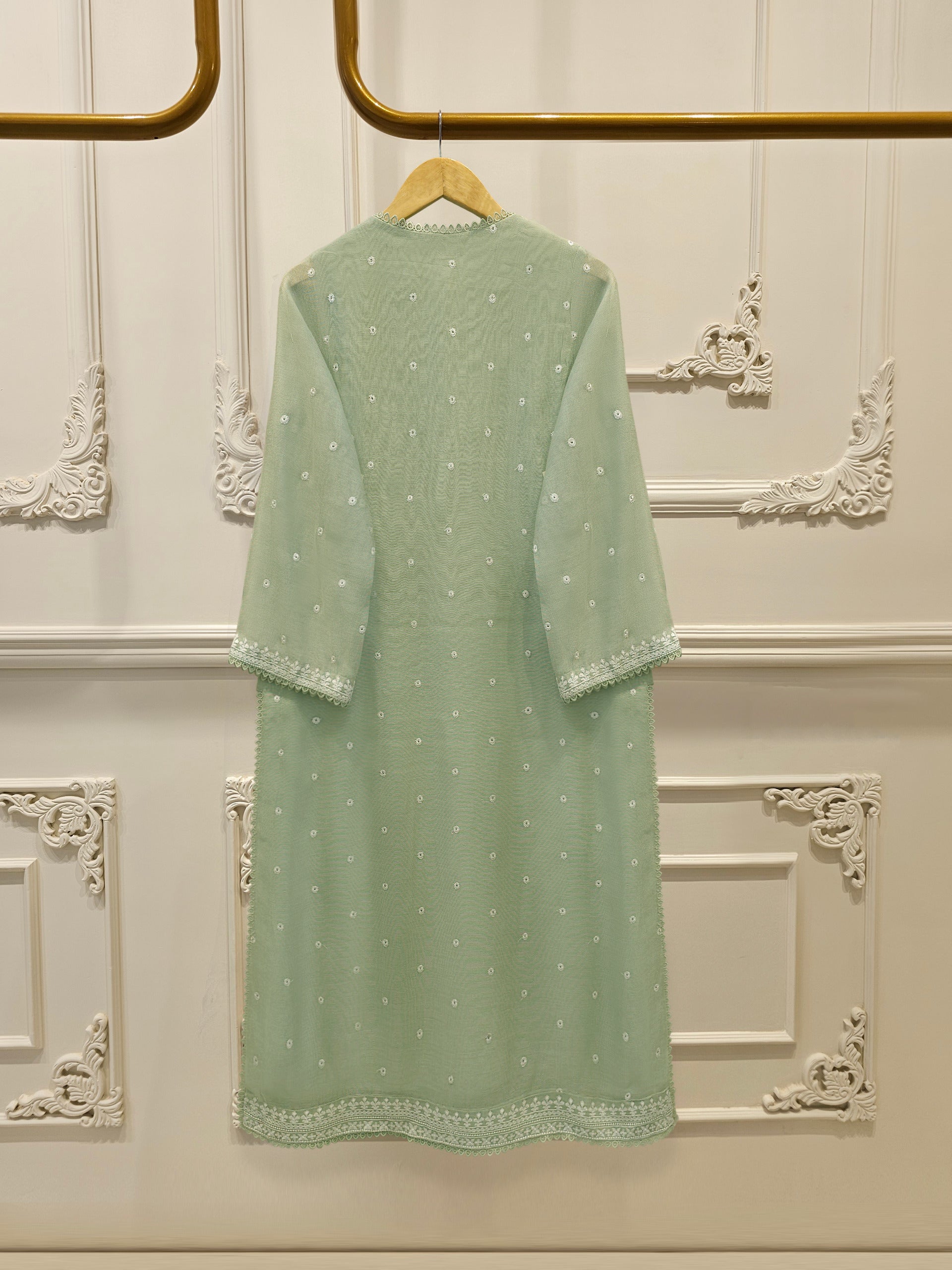 Introducing our elegant embroidered cotton net shirt with pants a perfect choice for those who appreciate intricate detailing and graceful style. Crafted from high-quality cotton net fabric, this shirt offers a lightweight and luxurious feel, allowing you to feel comfortable and chic throughout the day. The set comes with a matching pant which enhances the overall look and adds a touch of finesse to your outfit.