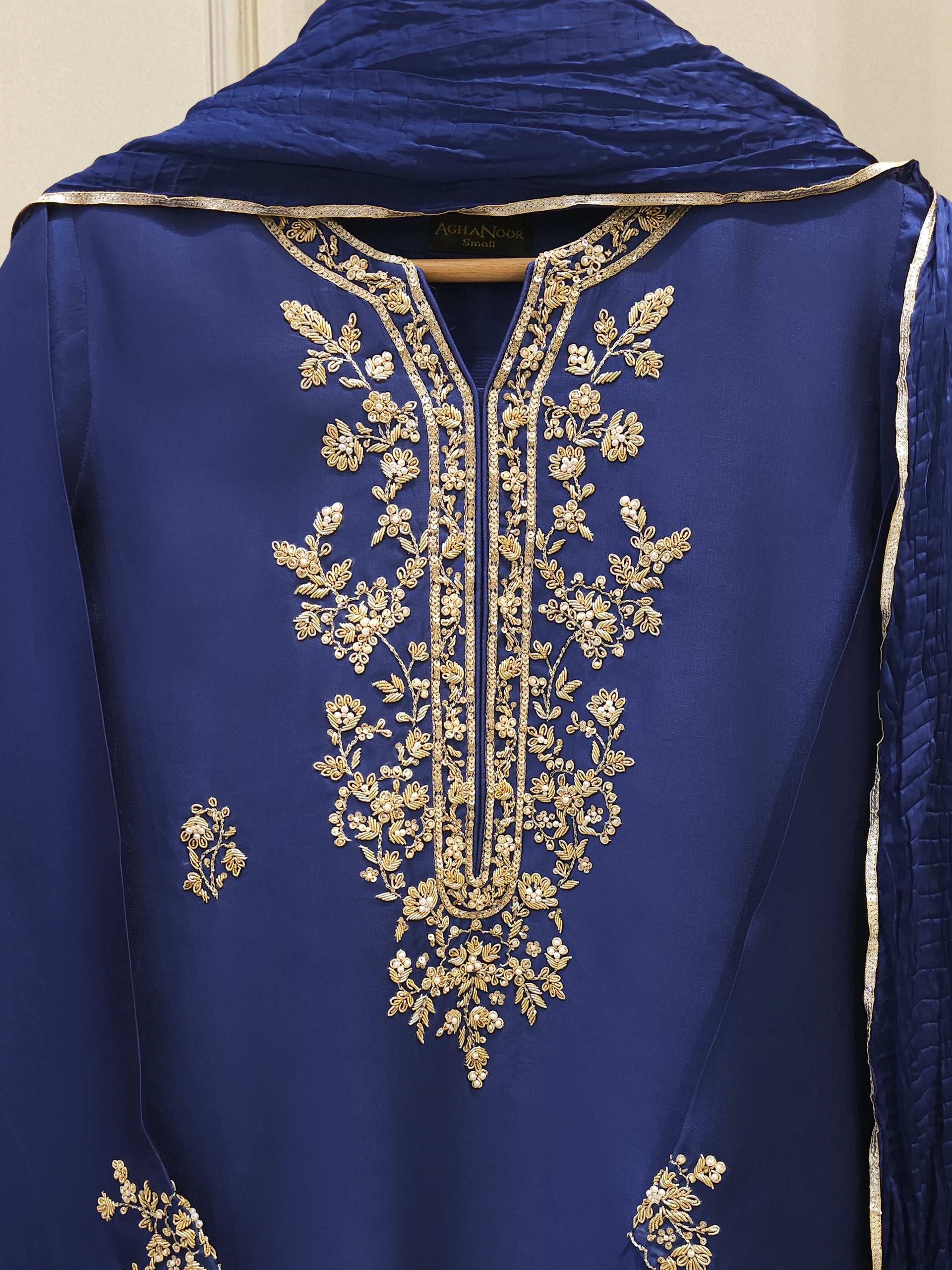 3 Piece- Pure Embroidered Sheesha Silk Suit S112418
