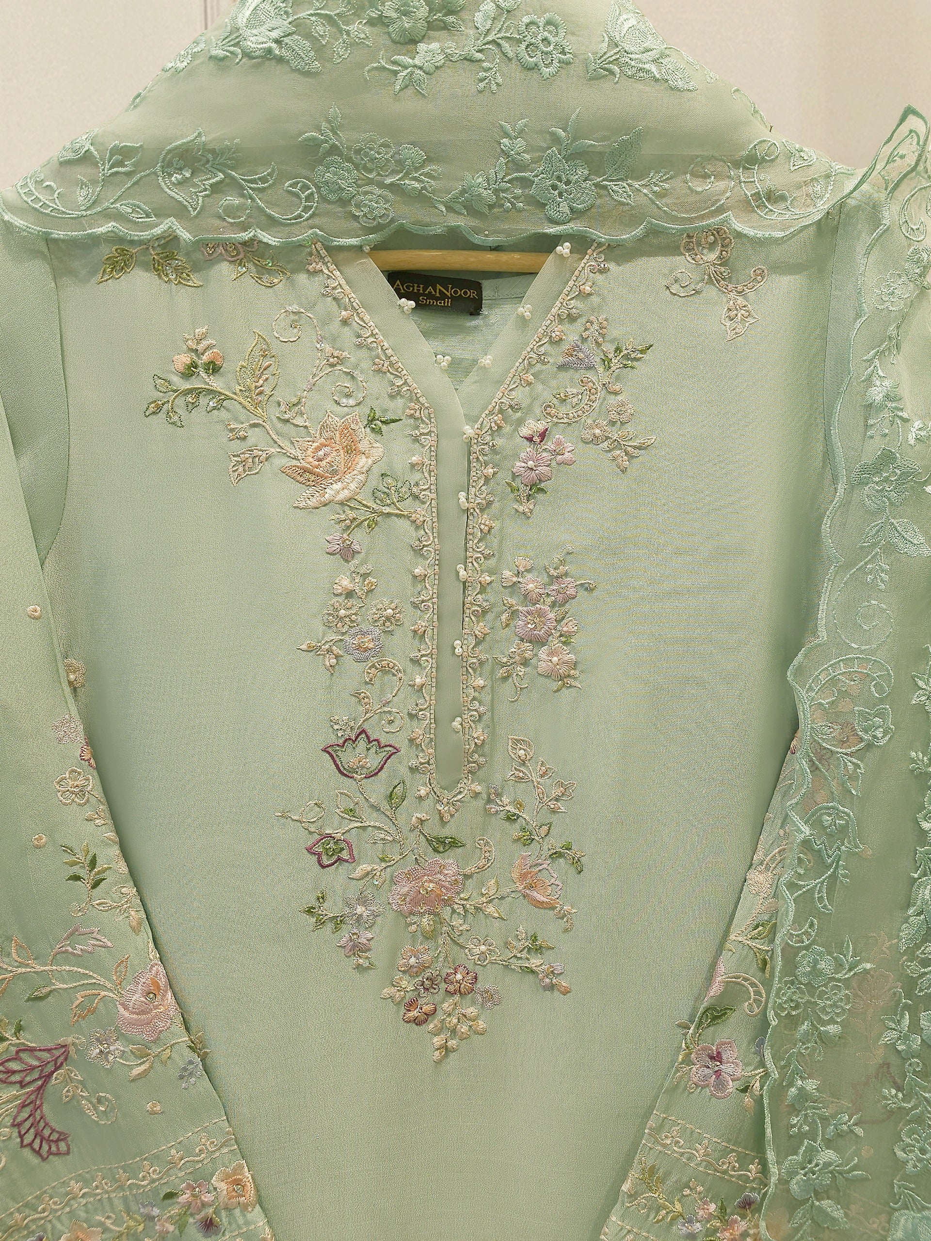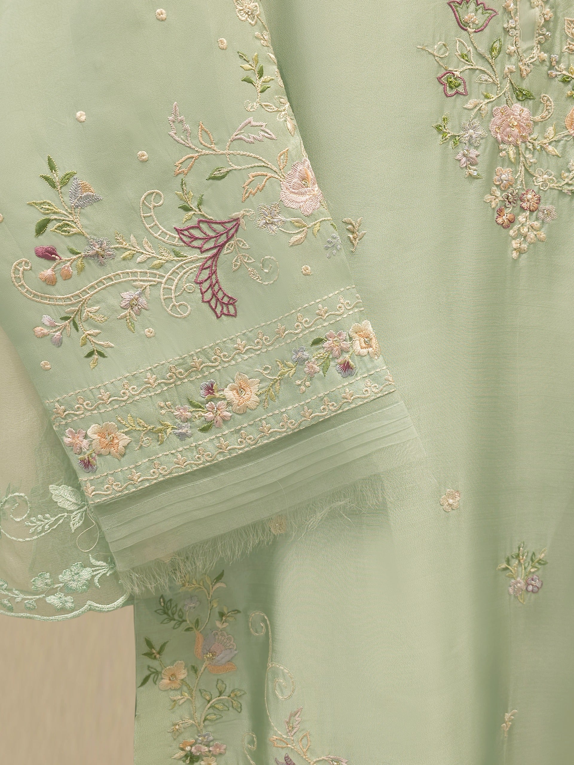3 Piece- Pure Embroidered Sheesha Silk Suit S112640