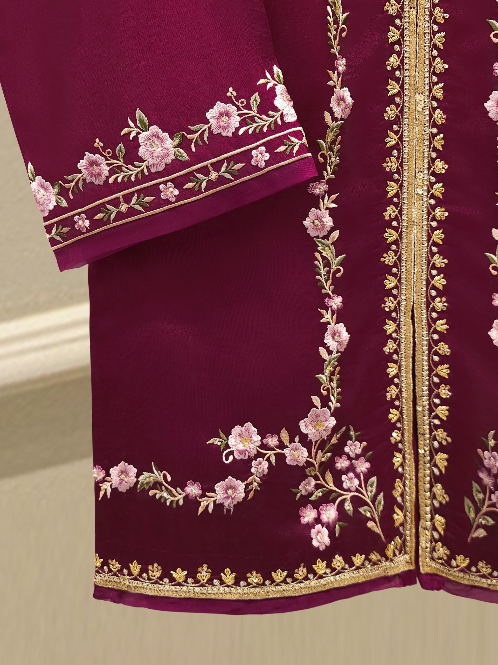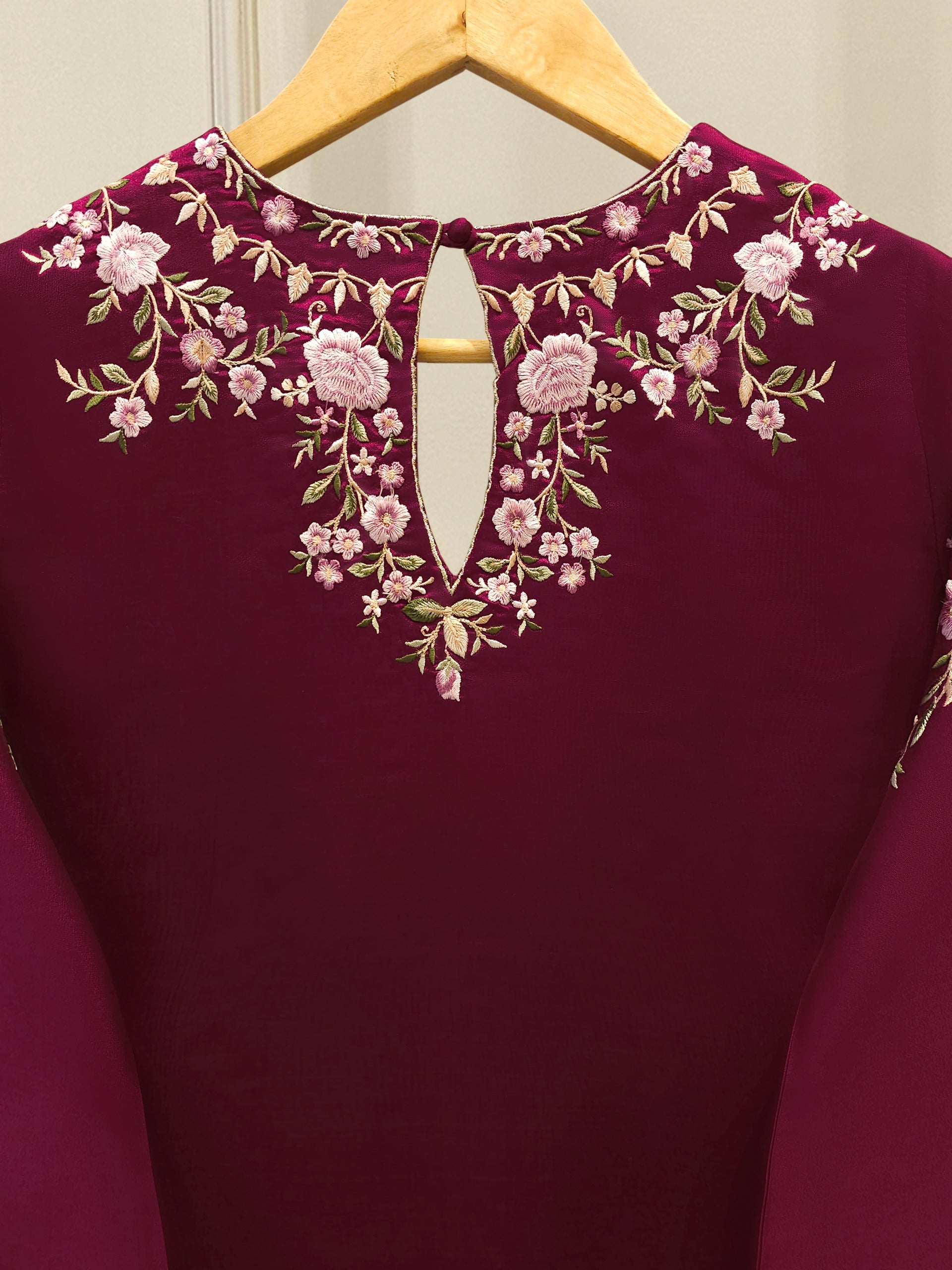 3 Piece- Pure Embroidered Sheesha Silk Suit S112927
