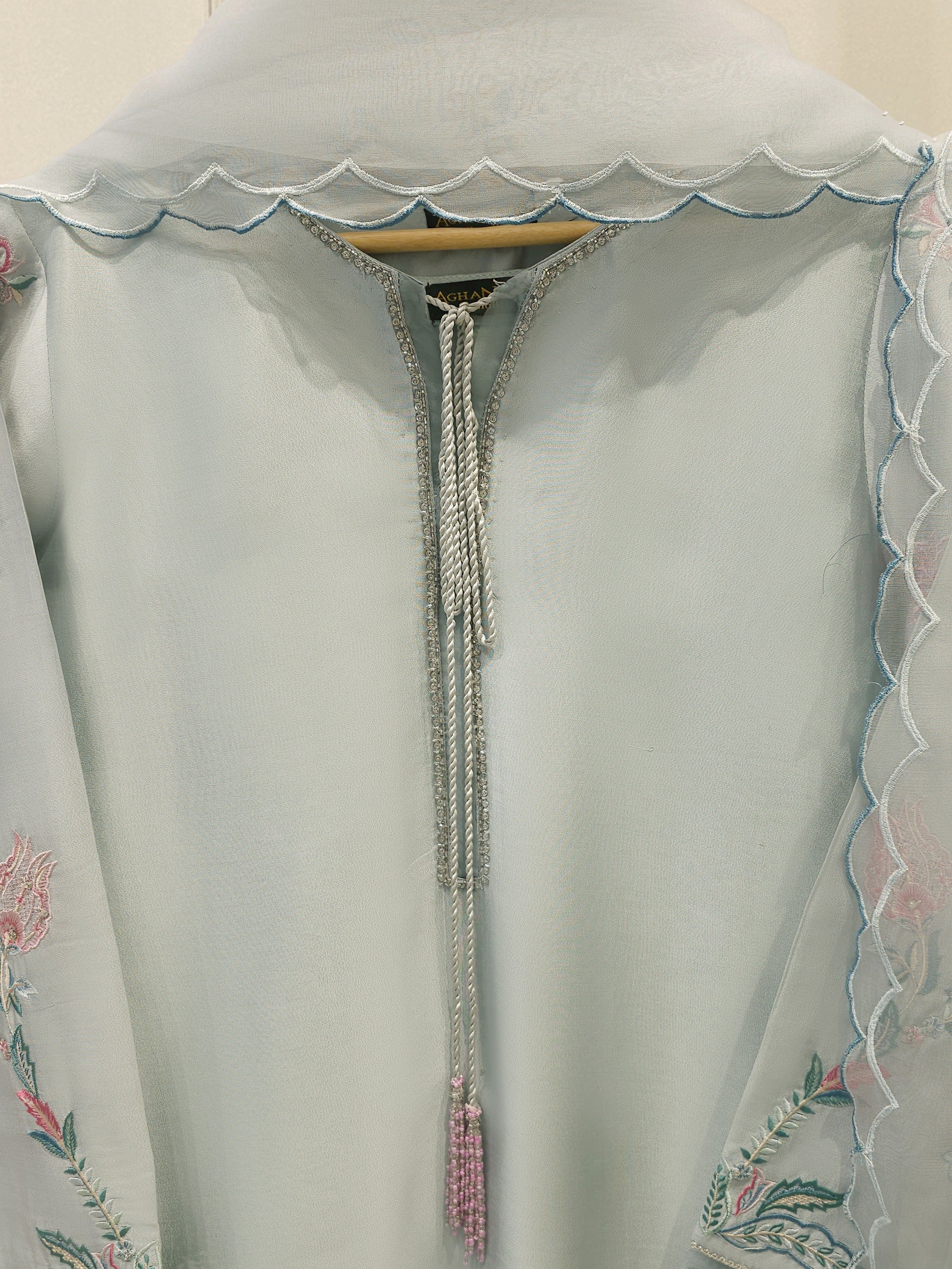 3 Piece- Pure Embroidered Sheesha Silk Suit S112962