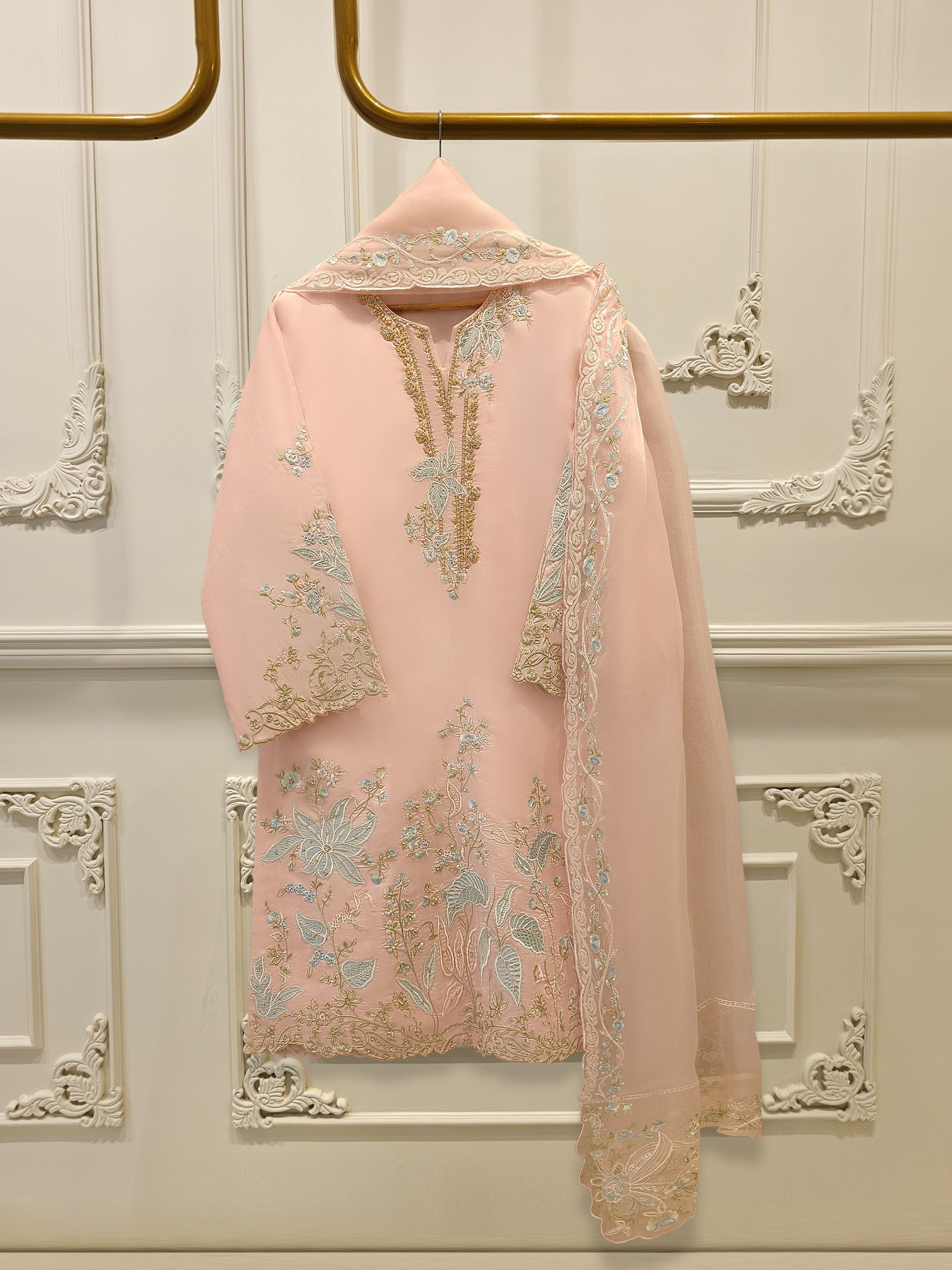 3 Piece- Pure Khadi Silk Embroidered Suit S112336