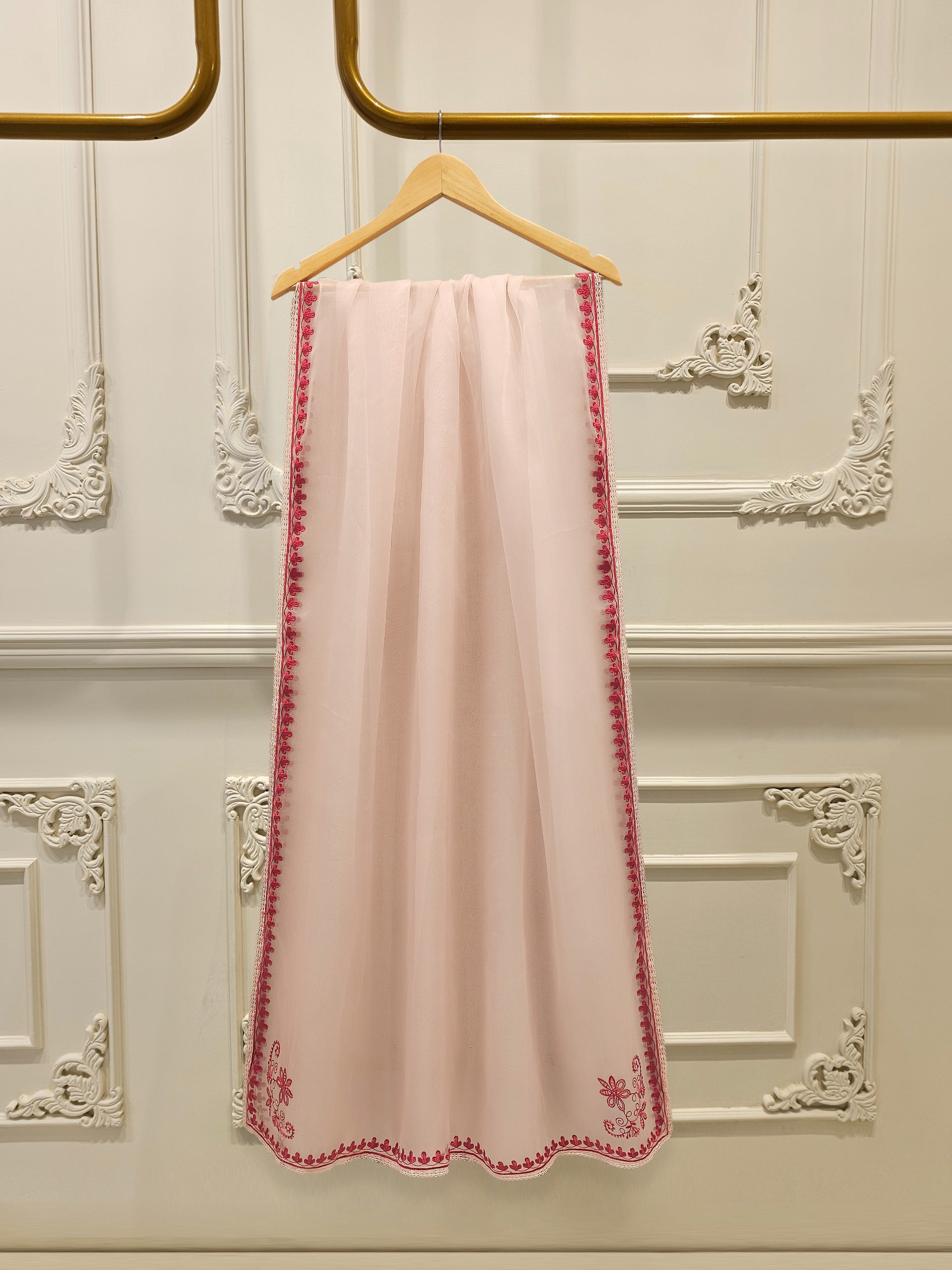 Elevate your style with baby pink embroidered organza straight shirt crafted with utmost care and attention to detail. The shirt features intricate embroidery on the front and sleeves, adding a touch of timeless charm.