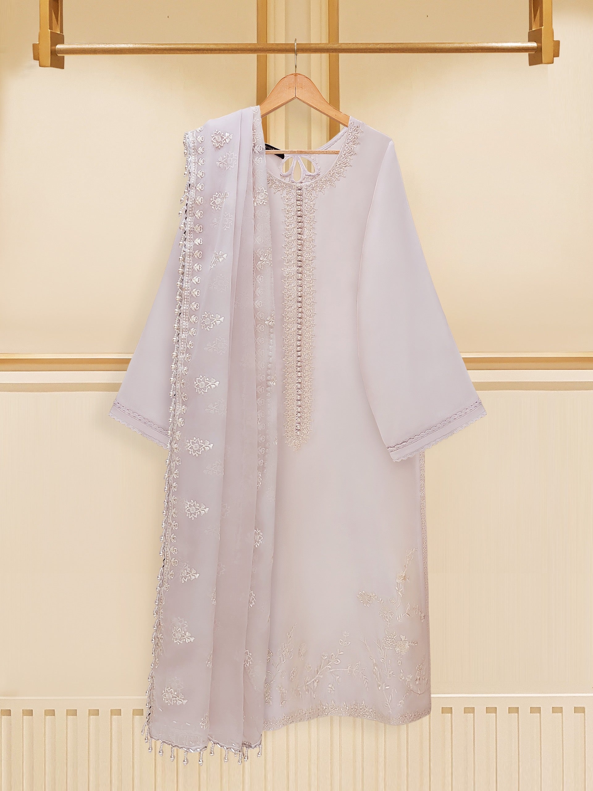 3 Piece - Pure Raw Silk Embroidered Suit S109412