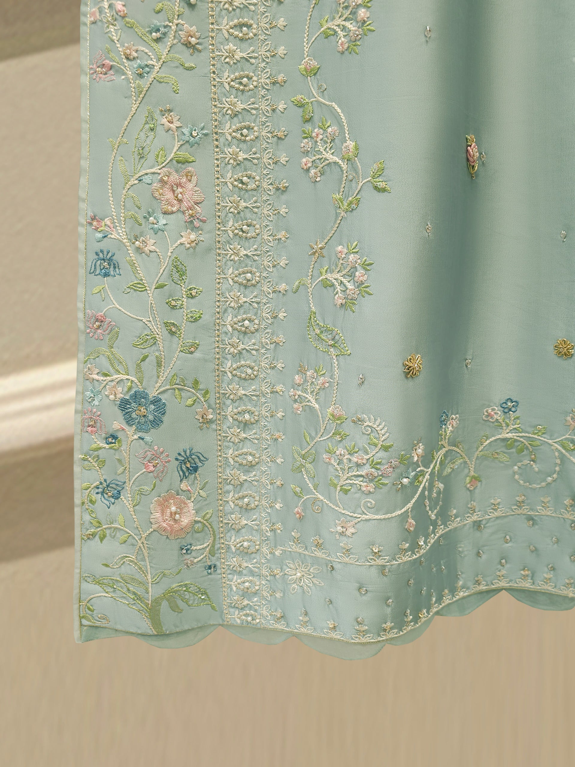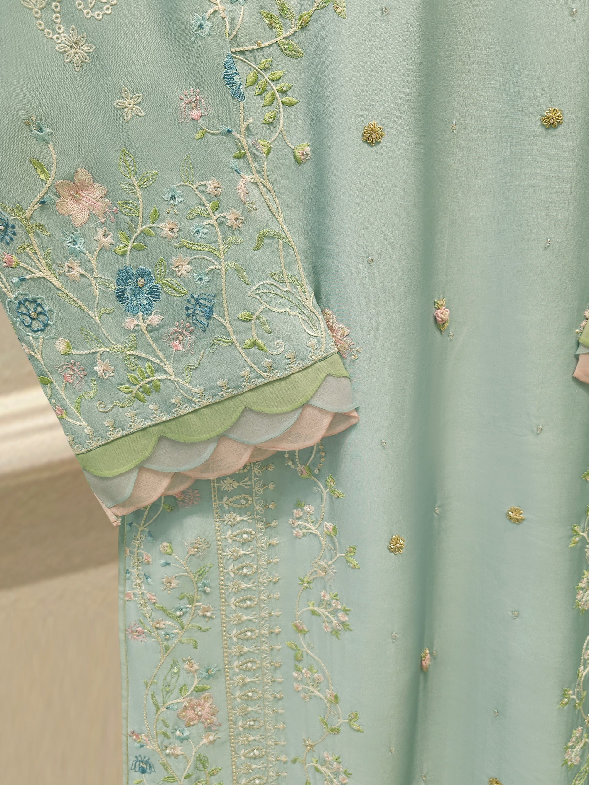 3 Piece- Pure Sheesha Silk Embroidered Suit S113340