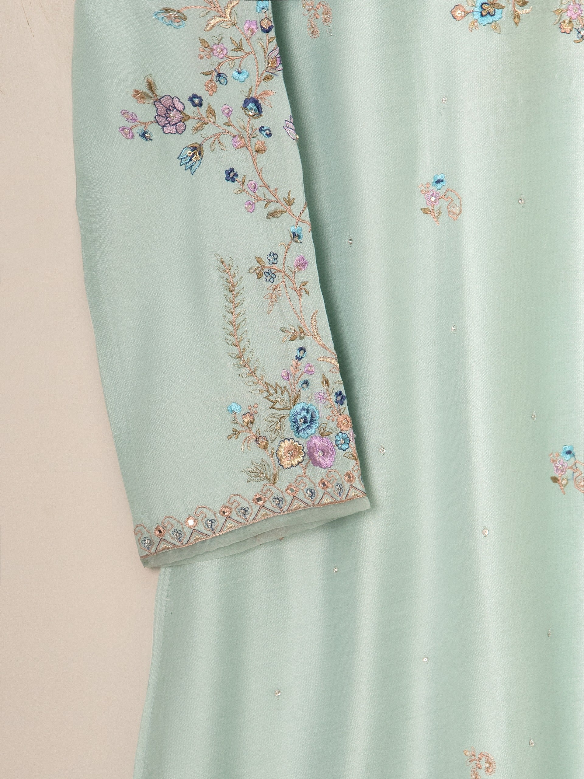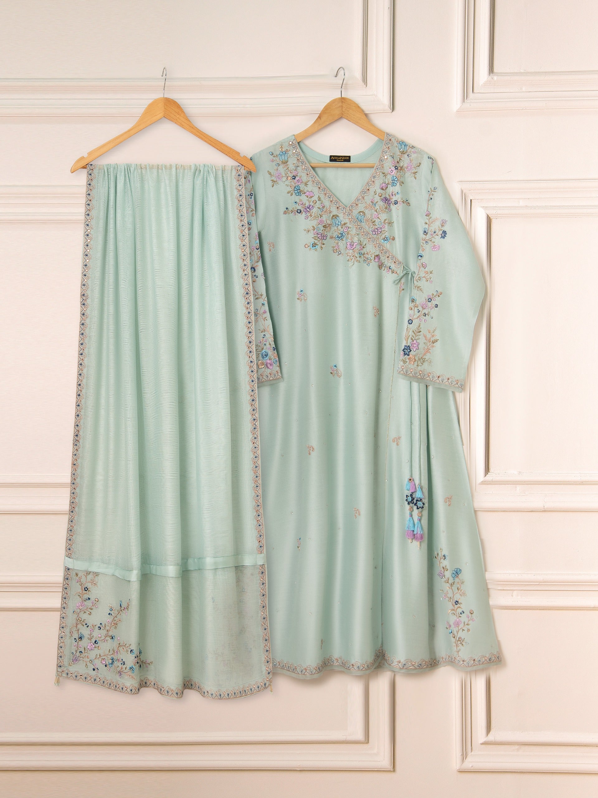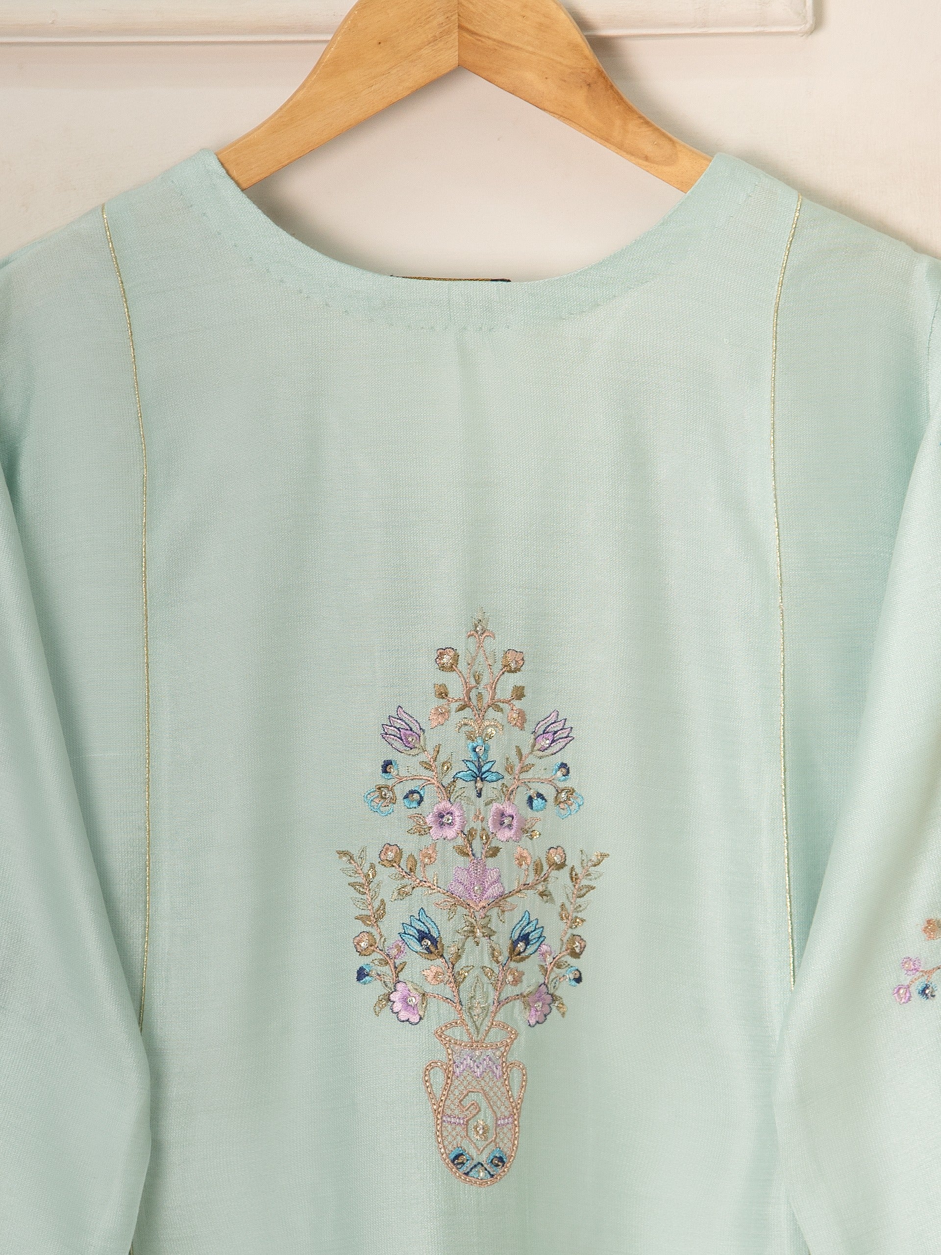3 Piece- Pure Silk Net Embroidered Suit S111529